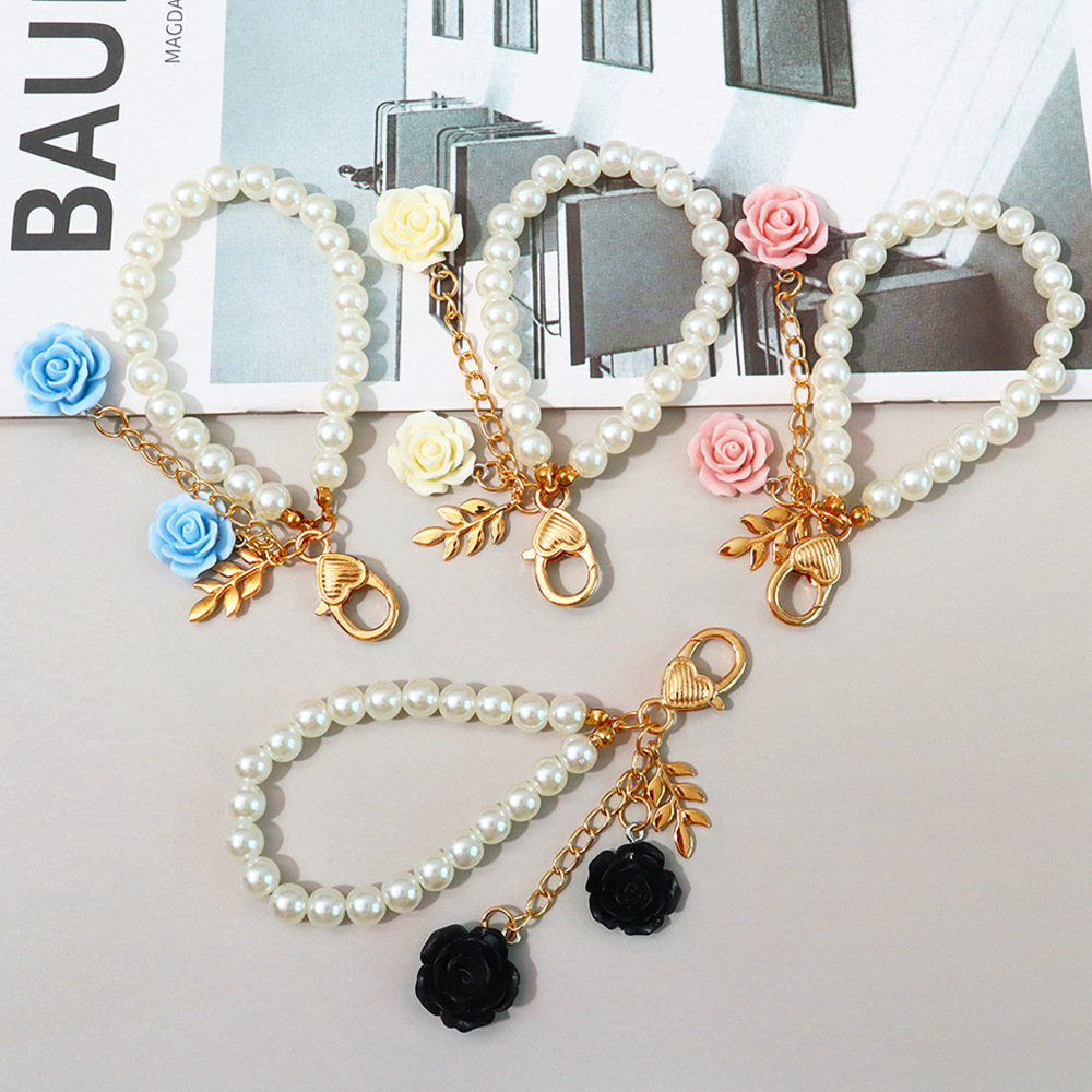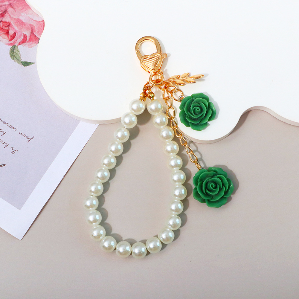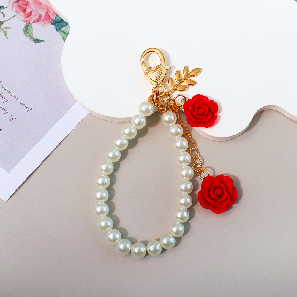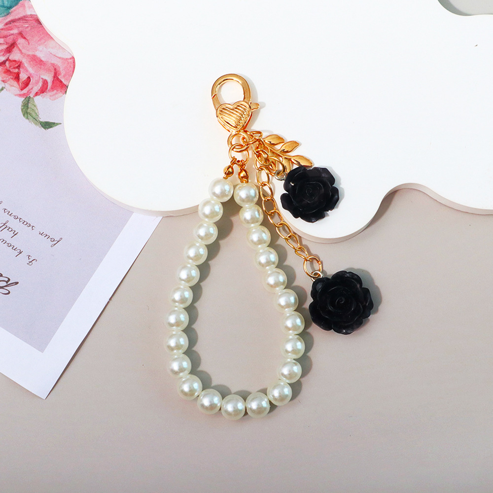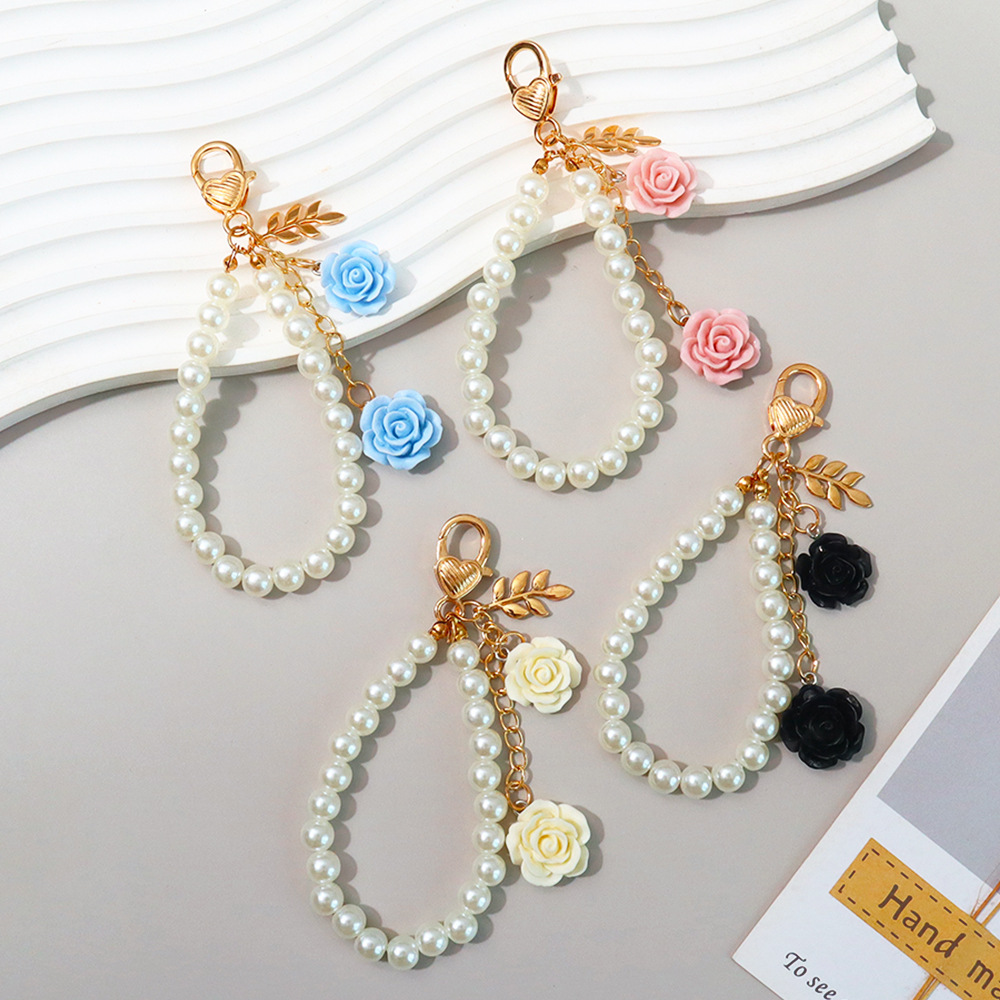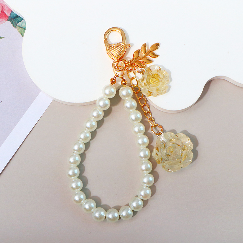 INS風2色花真珠ペンダントキーホルダー少女紛失防止ビーズストラップ