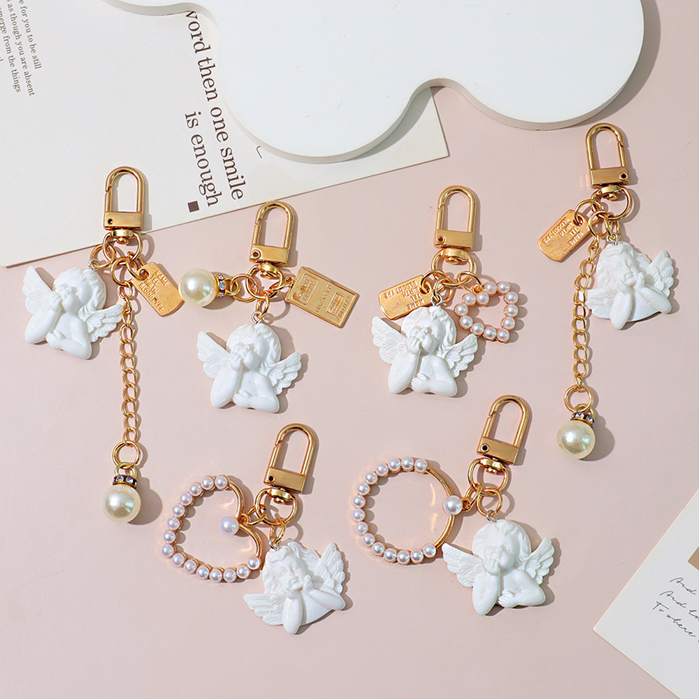 レトロなバロック天使の鍵は真珠の愛のペンダントの女子学生のDIY携帯電話のイヤホンの殻のカバンを掛けて飾ります。