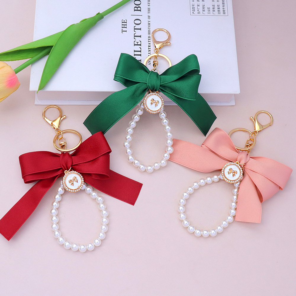 創意的な布芸の蝶結びのペンダントの鍵は真珠の愛のロブスターバックルの女子学生のカバンのペンダントの親友の贈り物を掛けます。