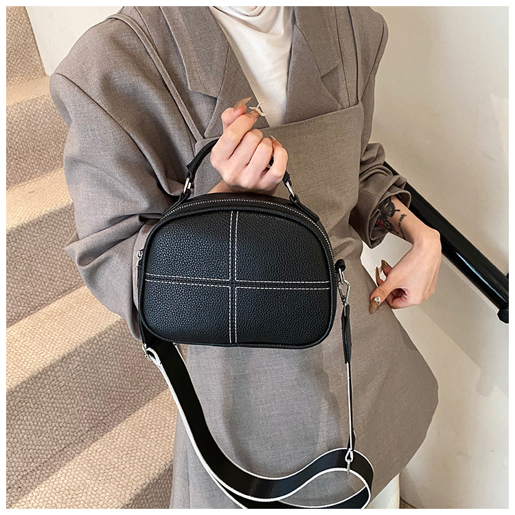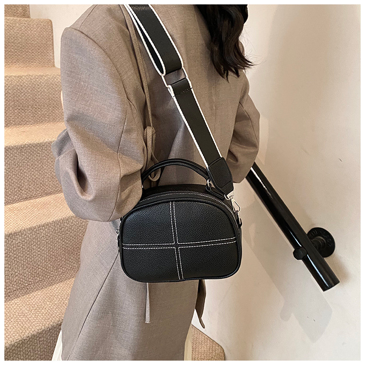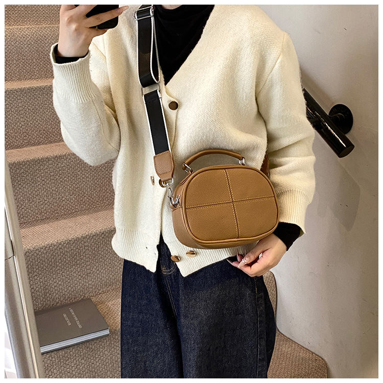 ファッション 2025 新コントラストカラーステッチ通勤ポータブルシンプルな質感シングルショルダークロスボディレディースバケットスモールバッグトレンディ