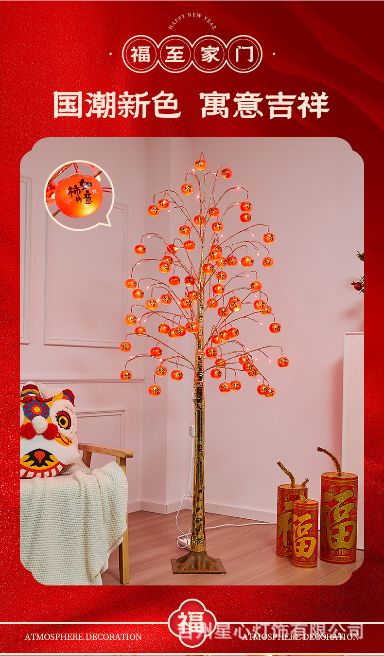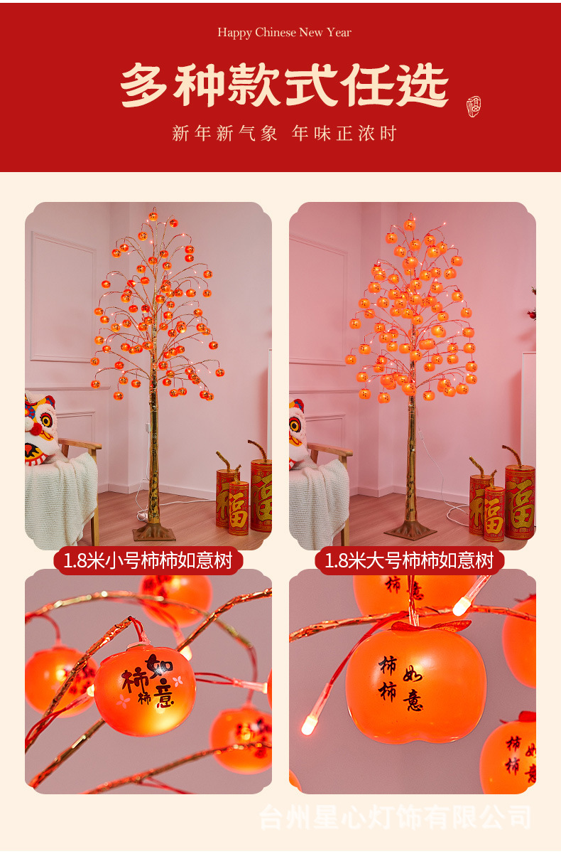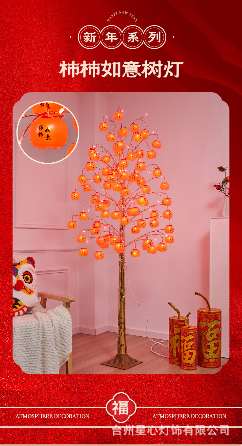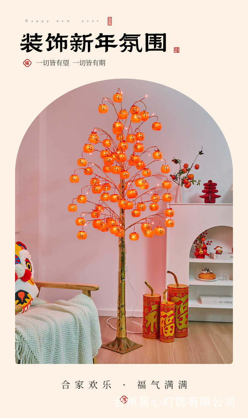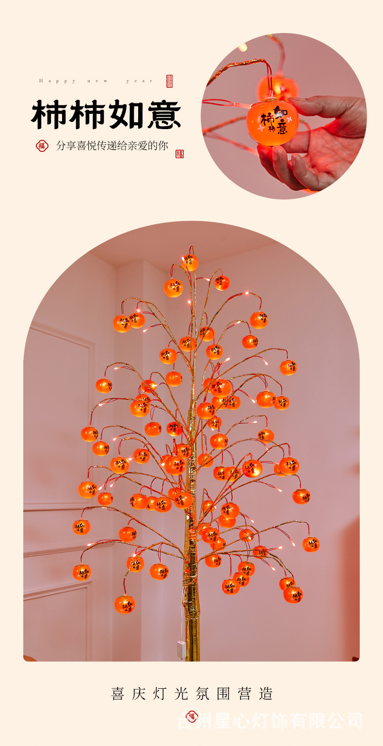 柿柿如意树灯新年喜庆插电款发光树灯室内节日氛围感装饰品