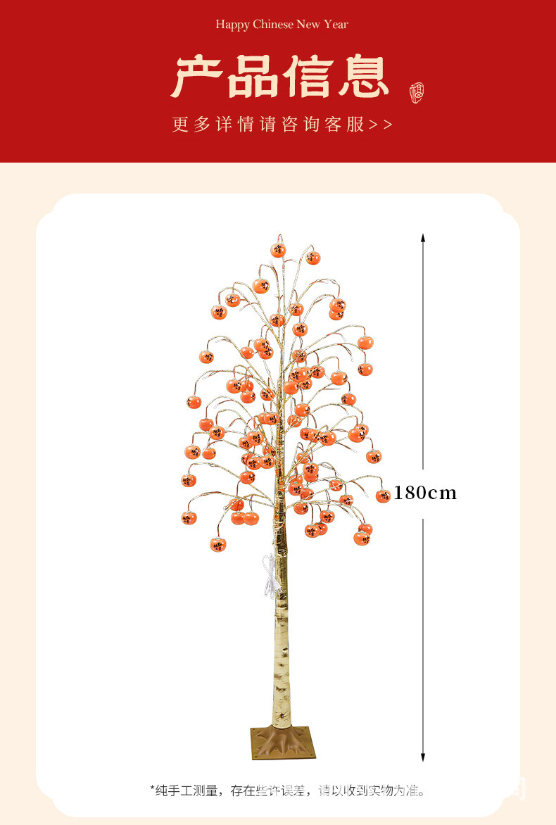 led仿真柿子树灯商场客厅喜庆氛围装饰摆件过年节日场景布置树灯