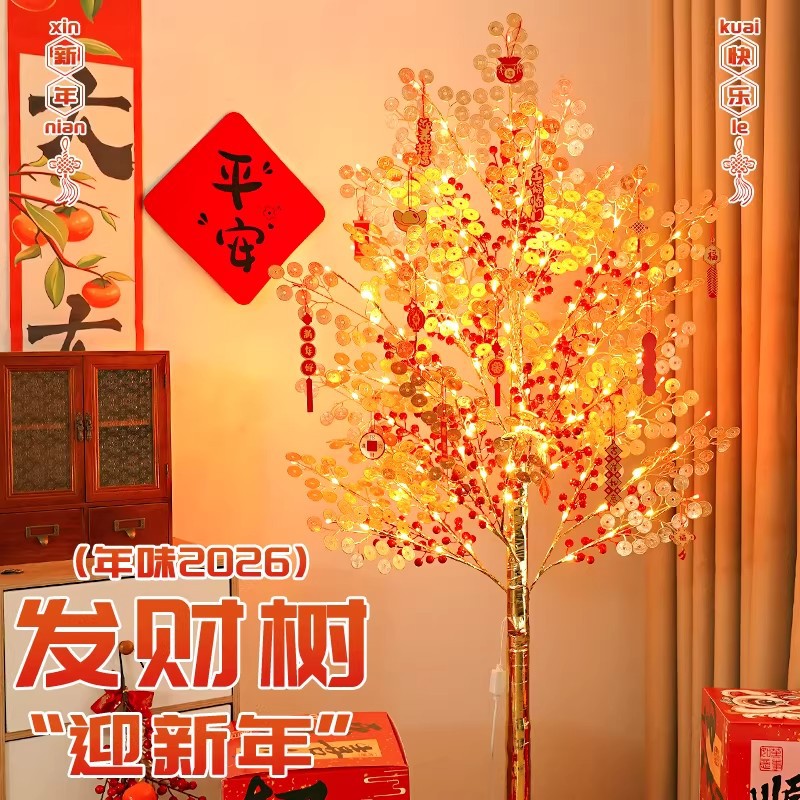 新年装饰树灯商场开业场景布置过年家用庭院发财树客厅氛围灯摆件