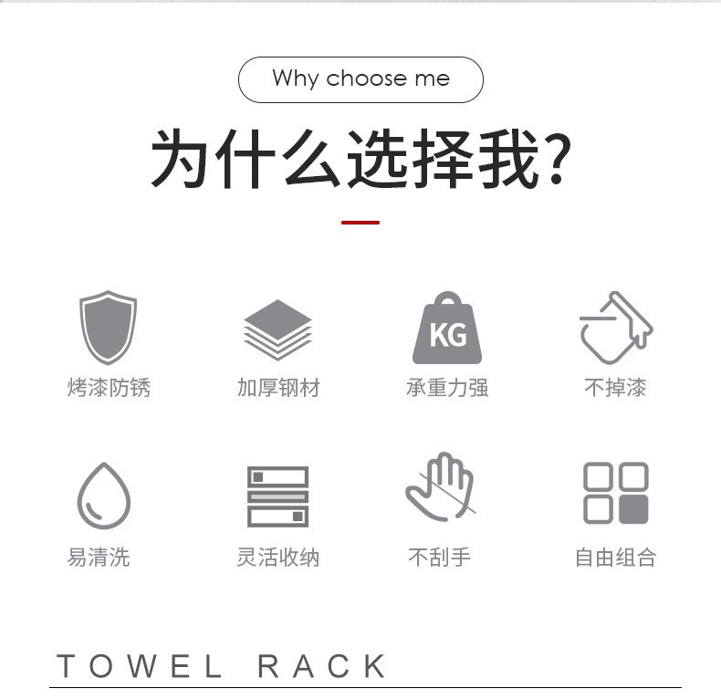 クロスボーダー浴室用パンチフリータオルラック、浴室用パンチフリータオルバー、304ステンレス鋼角管タオルバー