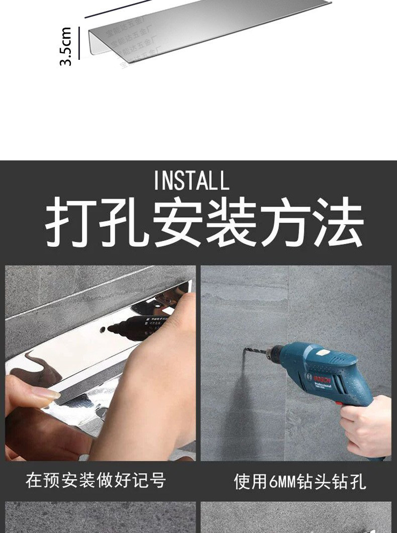 304ステンレス浴室棚穴なしトイレ洗面台鏡前一字仕切り収納棚