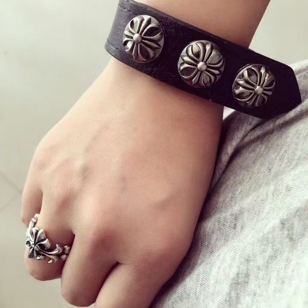 Emo憂鬱な富二代薔薇リベット手環パンクロック白銅材質本革ブレスレット潮人
