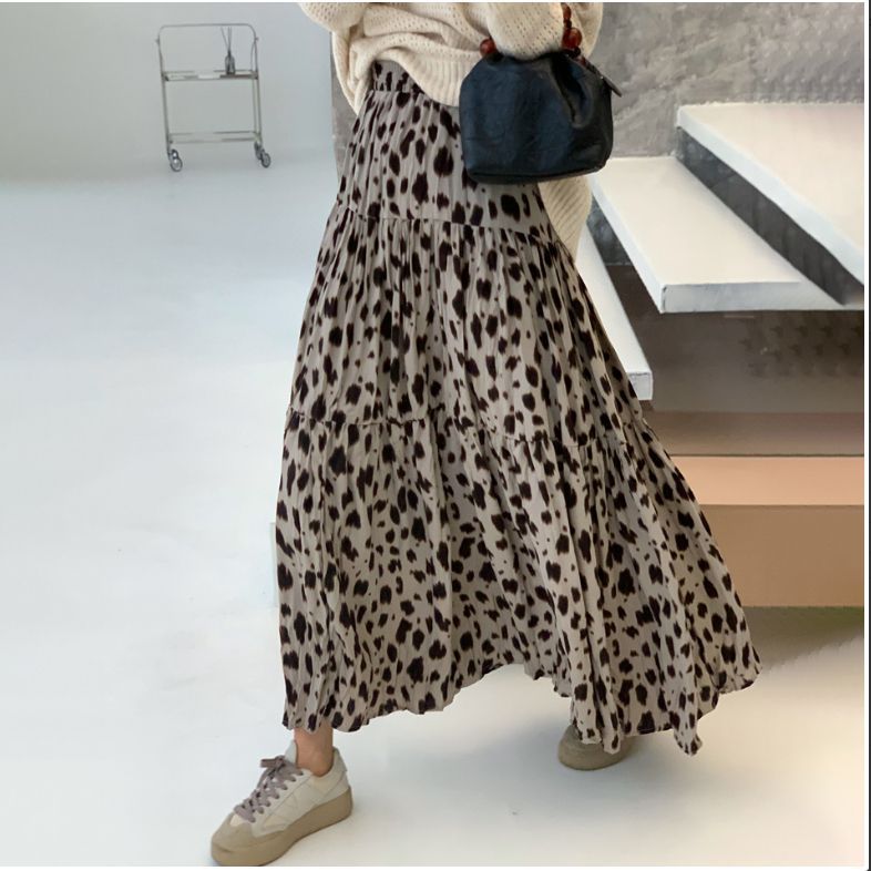 【スポット】レトロ茶色コーデュロイスカートa半身スカート早秋刺繍砕花森系ひざ丈ロングスカート