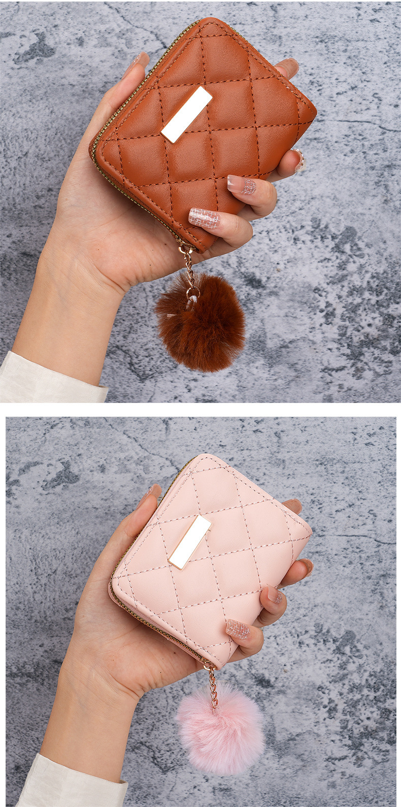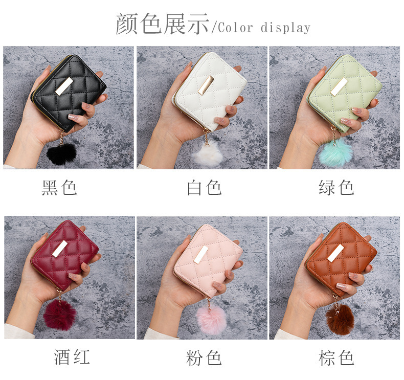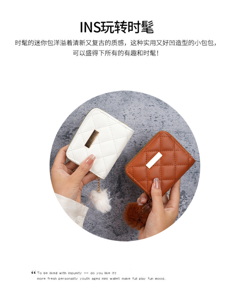 都市シンプル風ゼロ財布2024新型カードバッグ菱格毛玉ミニバッグメーカー卸売り直販女性バッグ