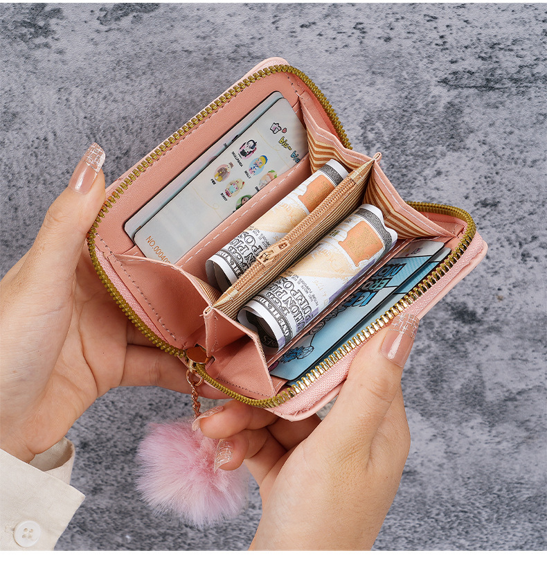 新品财布レディースファッションリストストラップショート小銭入れ大容量コインクリップバッグマルチカードホルダー