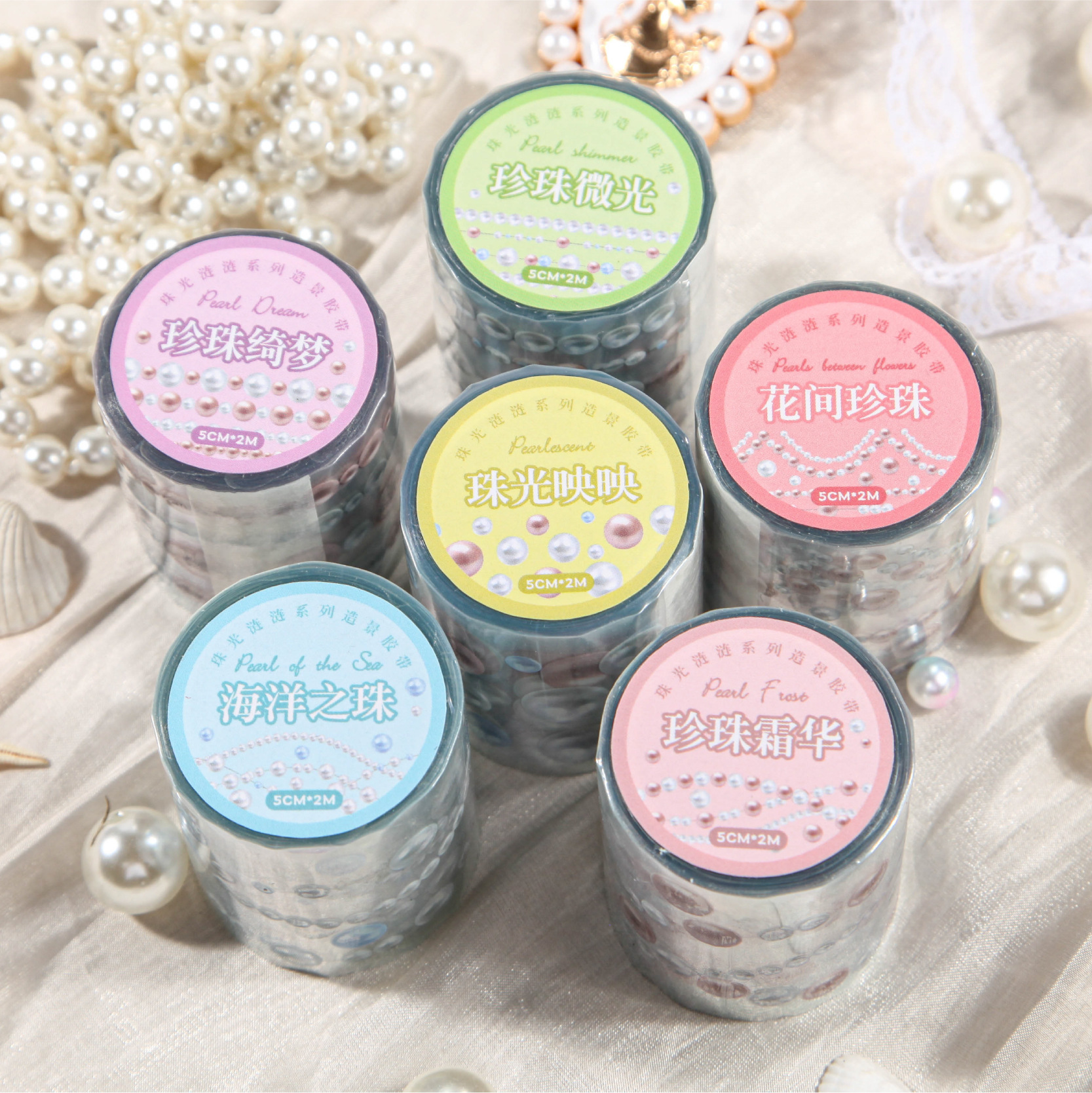 国境を越えたスポット卸売真珠光沢のある光高級レーザーテープハンドブック diy 素材ステッカークリエイティブテープ ins スタイル