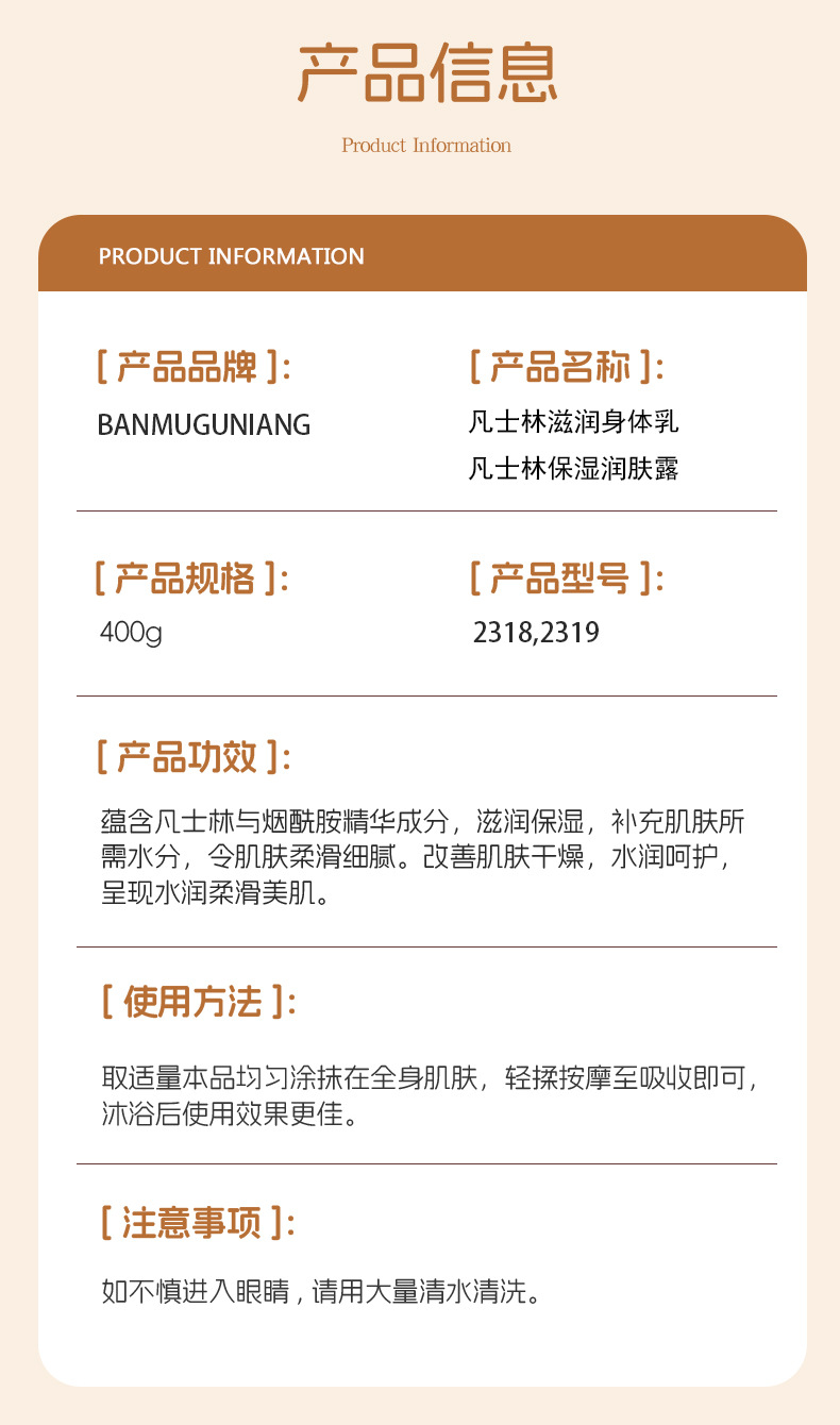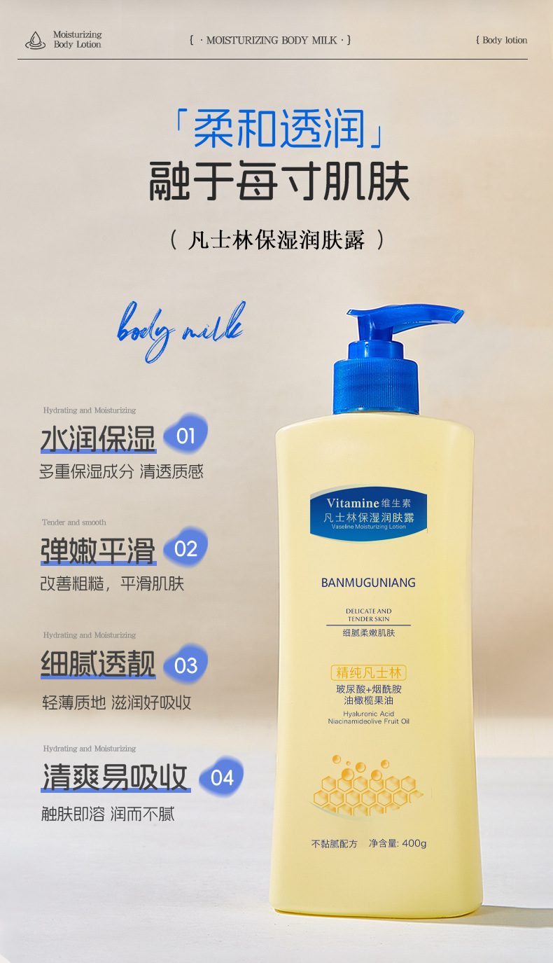 BANMUGUNIANG凡士林身体乳烟酰胺保湿水润持久留香润肤霜支持代发