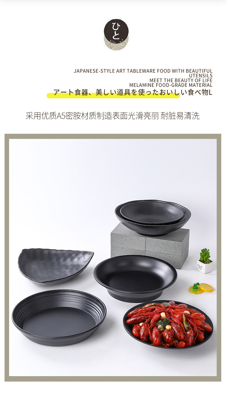 メラミン食器黒焼き皿長方形焼肉鍋店専用皿業務用おかず皿創意