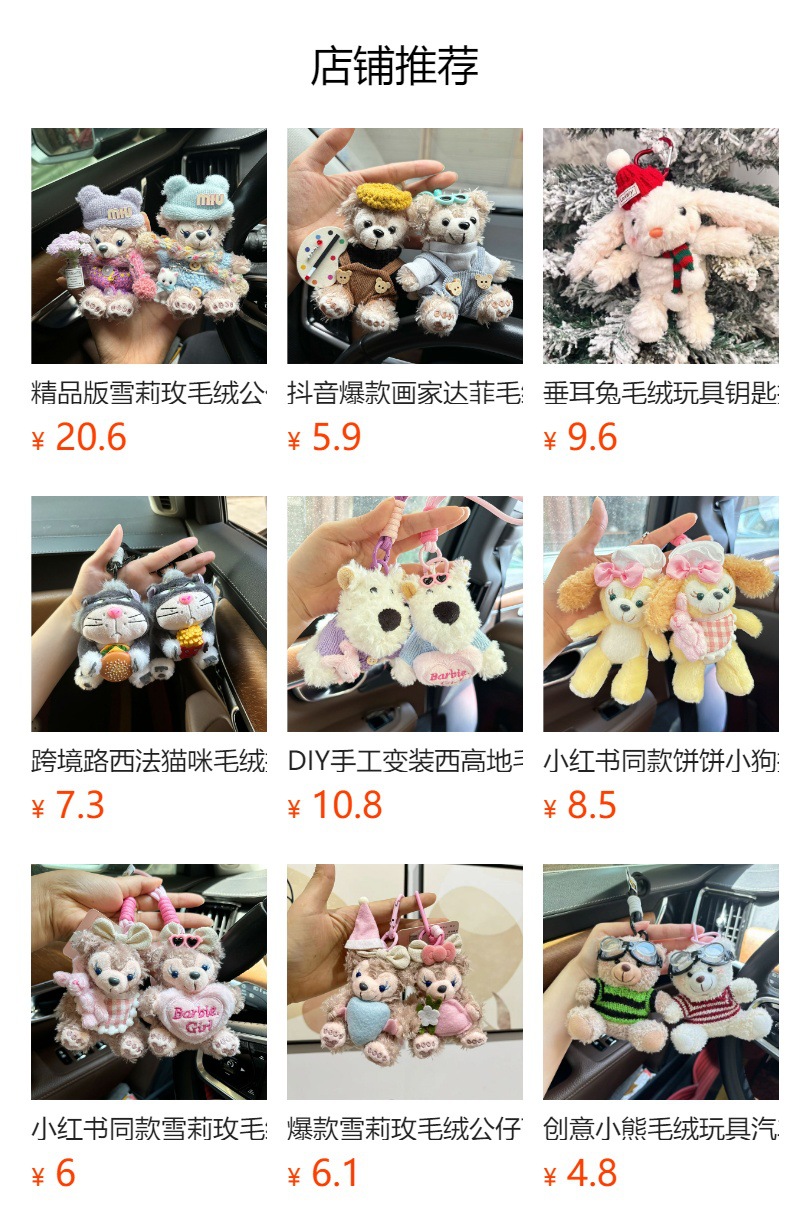 小紅書の人形と同じスタイルの雪莉ぬいぐるみ、かわいいダッフィーベアのぬいぐるみ、車のキーホルダー、女の子向け