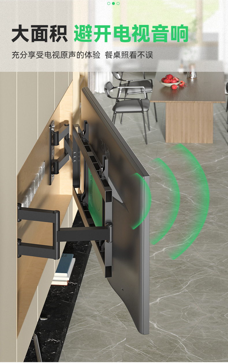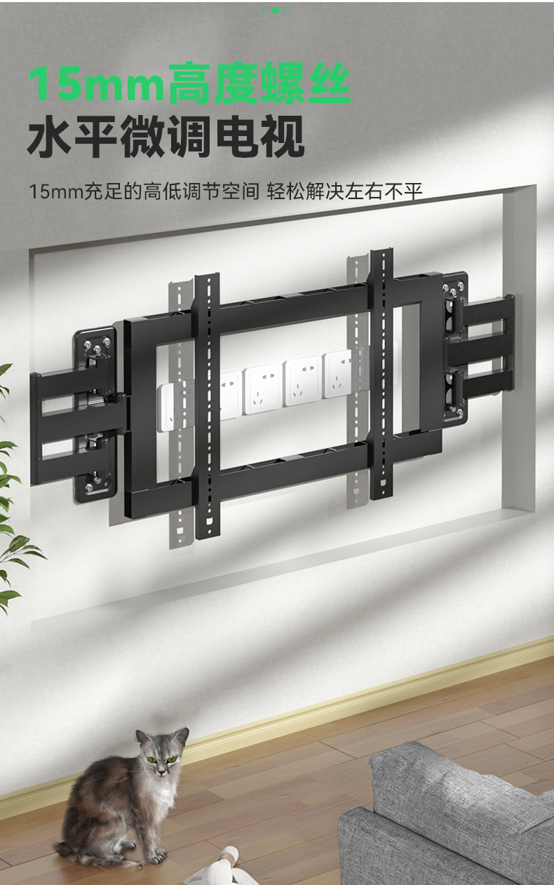 DY874三策超薄型大画面テレビ伸縮ラックの外転折り畳みはコンセントの内蔵回転ブラケットを避けます。