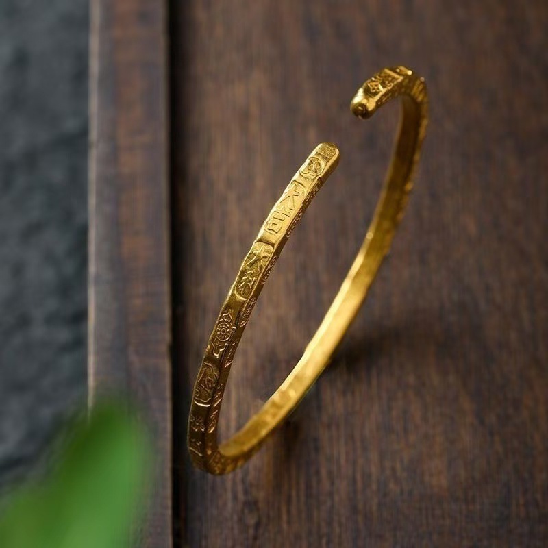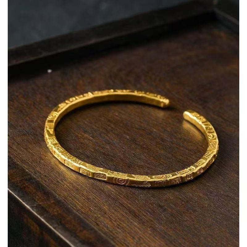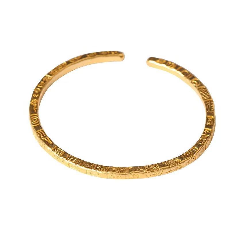 生放送同型高保色ベトナム沙金古法彫り吉言開口ブレスレット銅金メッキ大吉イタリアブレスレット