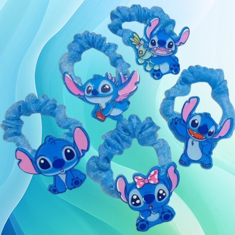 鴎美かわいいブルーピンクのスティッチの腸輪漫画の子供のアクセサリーの馬尾のひもの皮筋の女の子の髪飾り
