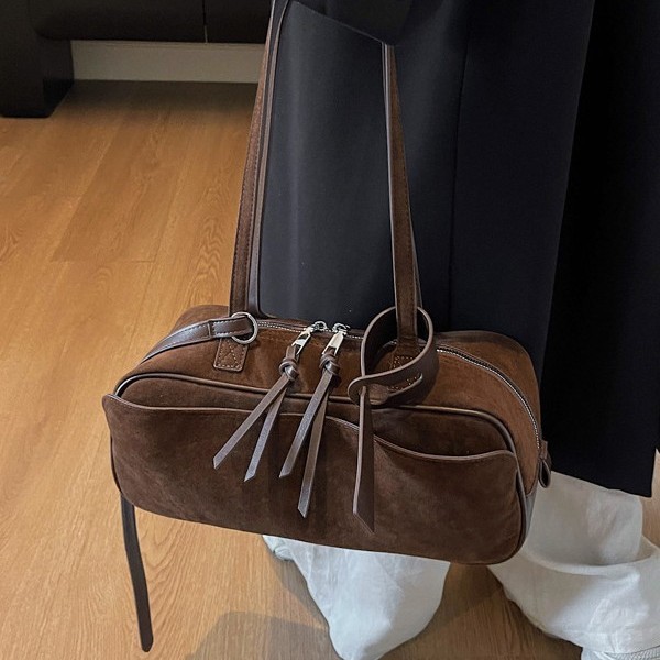 韩国复古手提保龄球包包女2025秋冬新款潮时尚麂皮绒单肩腋下包
