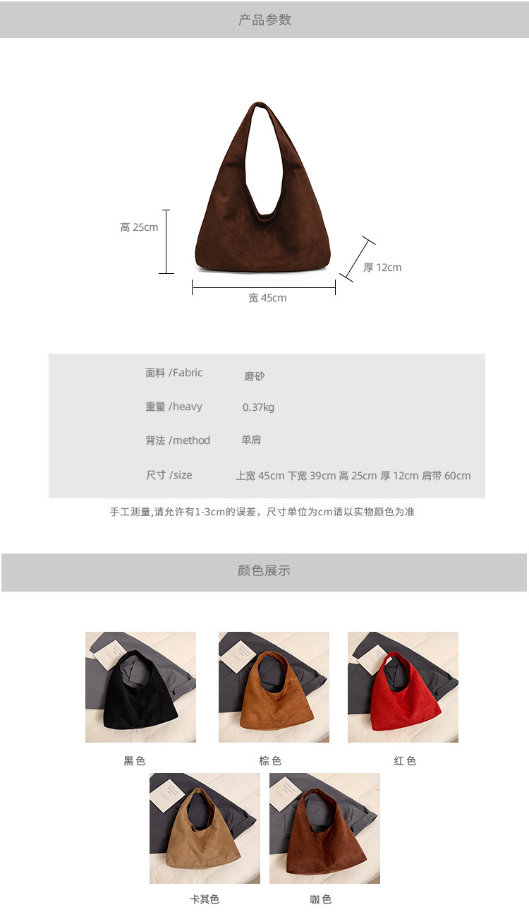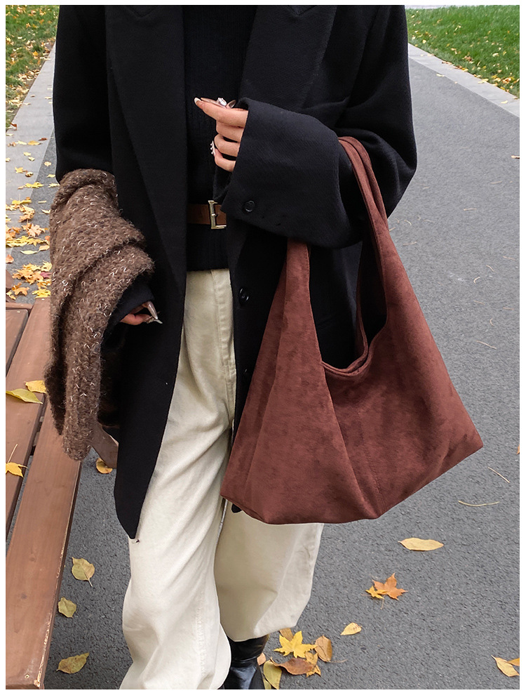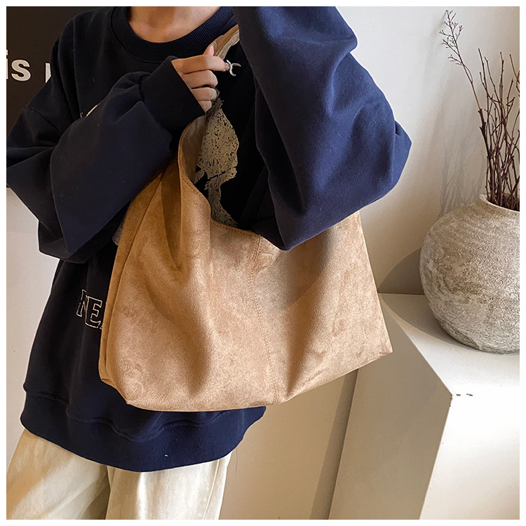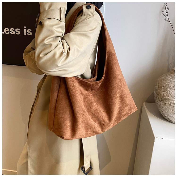 クロスボーダーレトロ風マット大容量バッグ2025秋冬新作スエードショルダーバッグ/脇下バッグ/ハンドバッグ/トートバッグ
