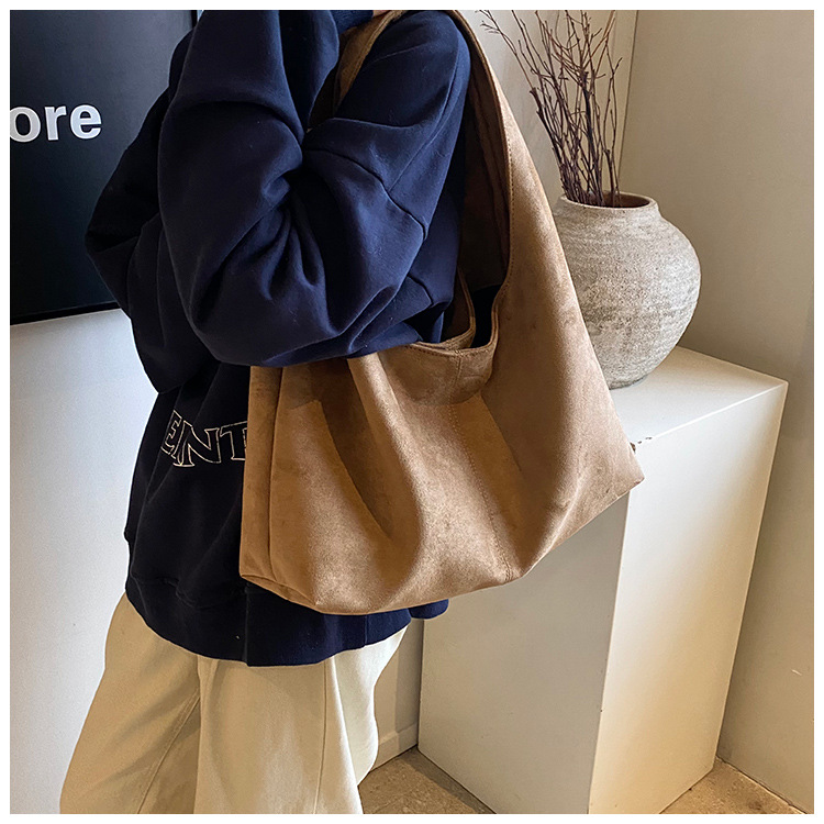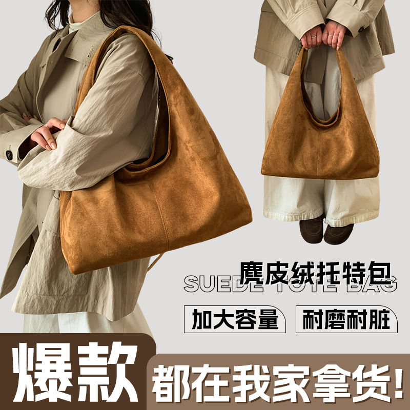 批发2026新款复古女士腋下包手提包麂皮绒面包包托特包大容量女