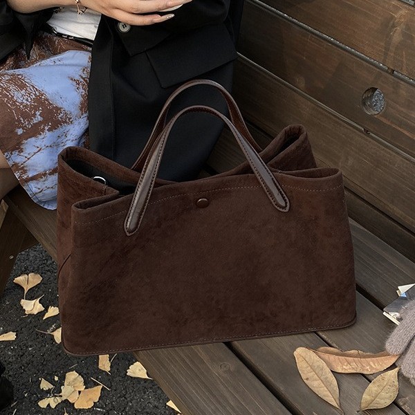韩版简约麂皮绒软皮托特包女2025秋冬新款大容量单肩包通勤购物袋