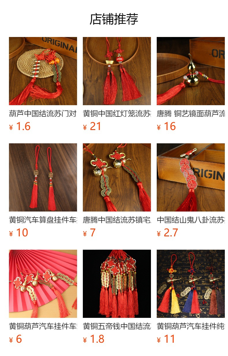 純銅瓢箪五帝銭中国結流蘇ストラップ解決ドアドア人財二旺家用中国結吉祥