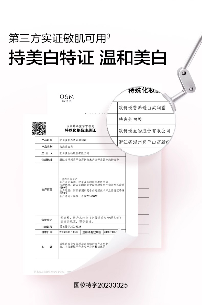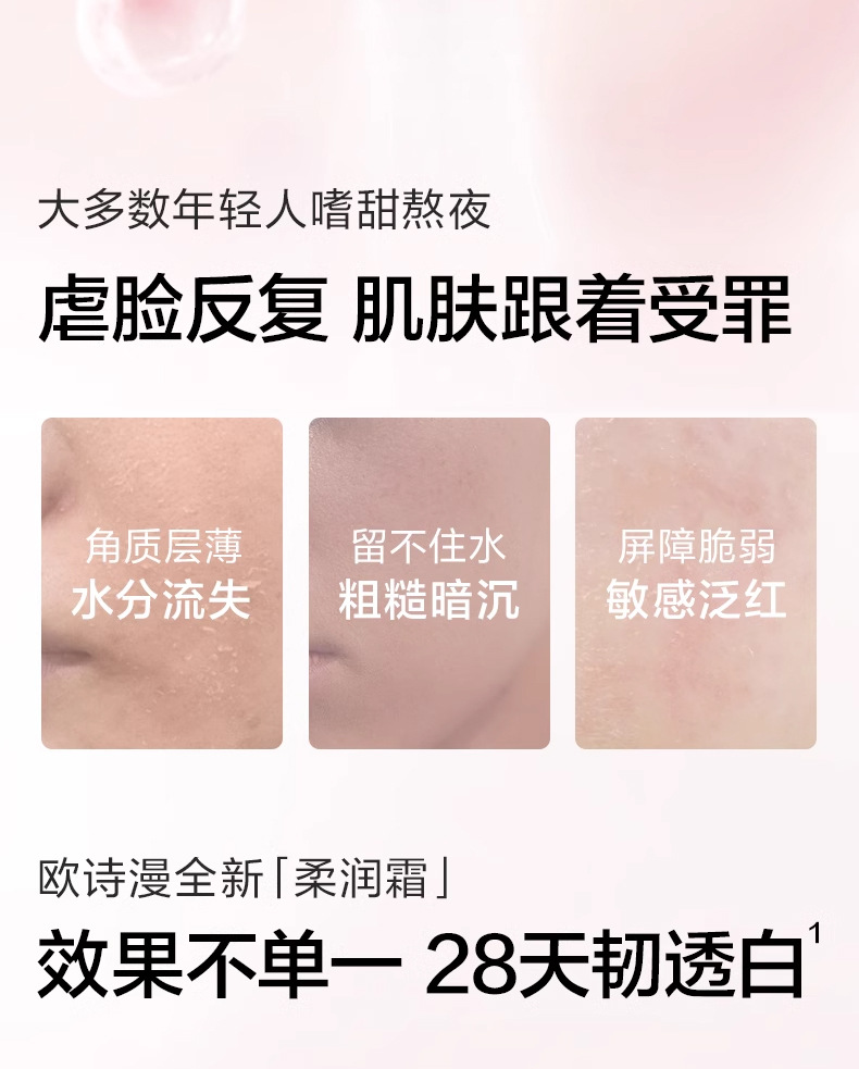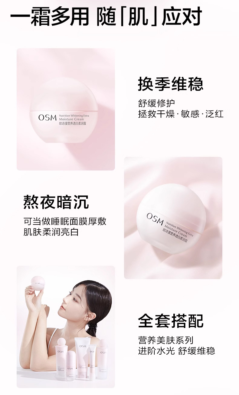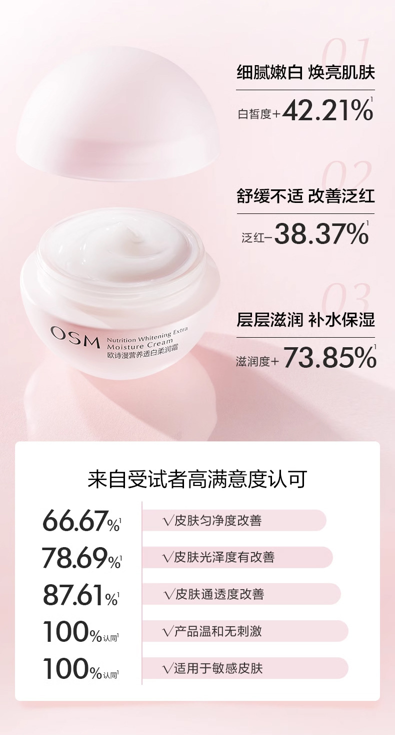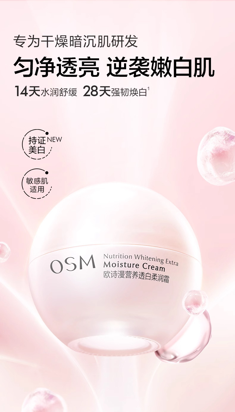 欧詩漫栄養透白柔潤霜美白淡斑補水潤い緩和夜更かしマスクスキンケア女性