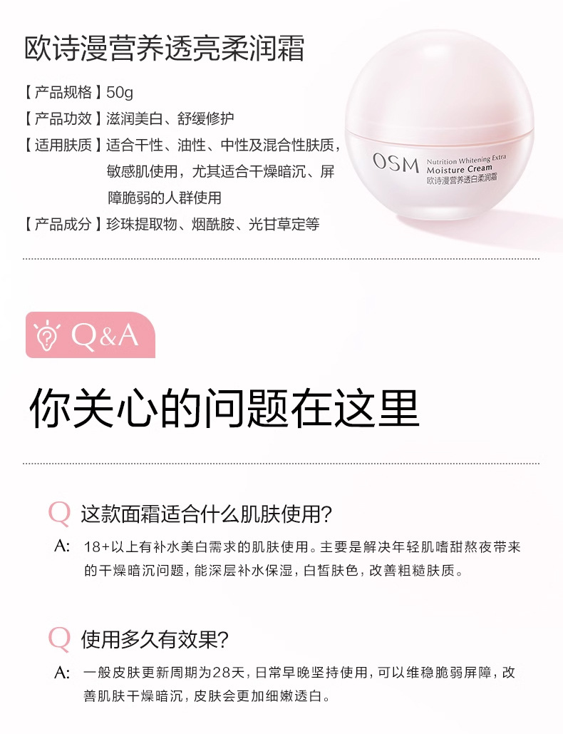 OSM/欧詩曼 パールパウダー ナチュラル保湿クリーム 保湿ローション フェイスクリーム 女性用化粧品 美白