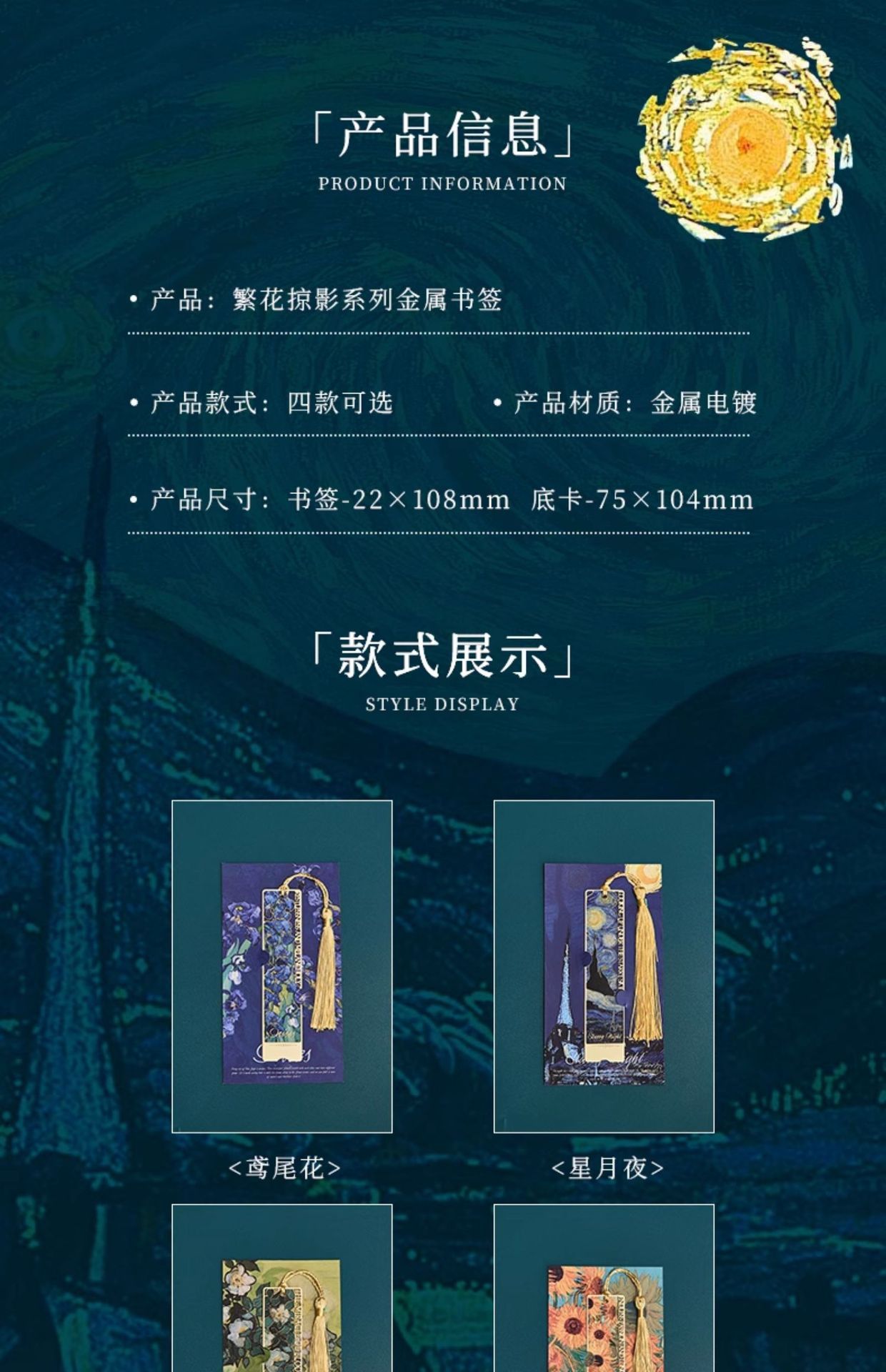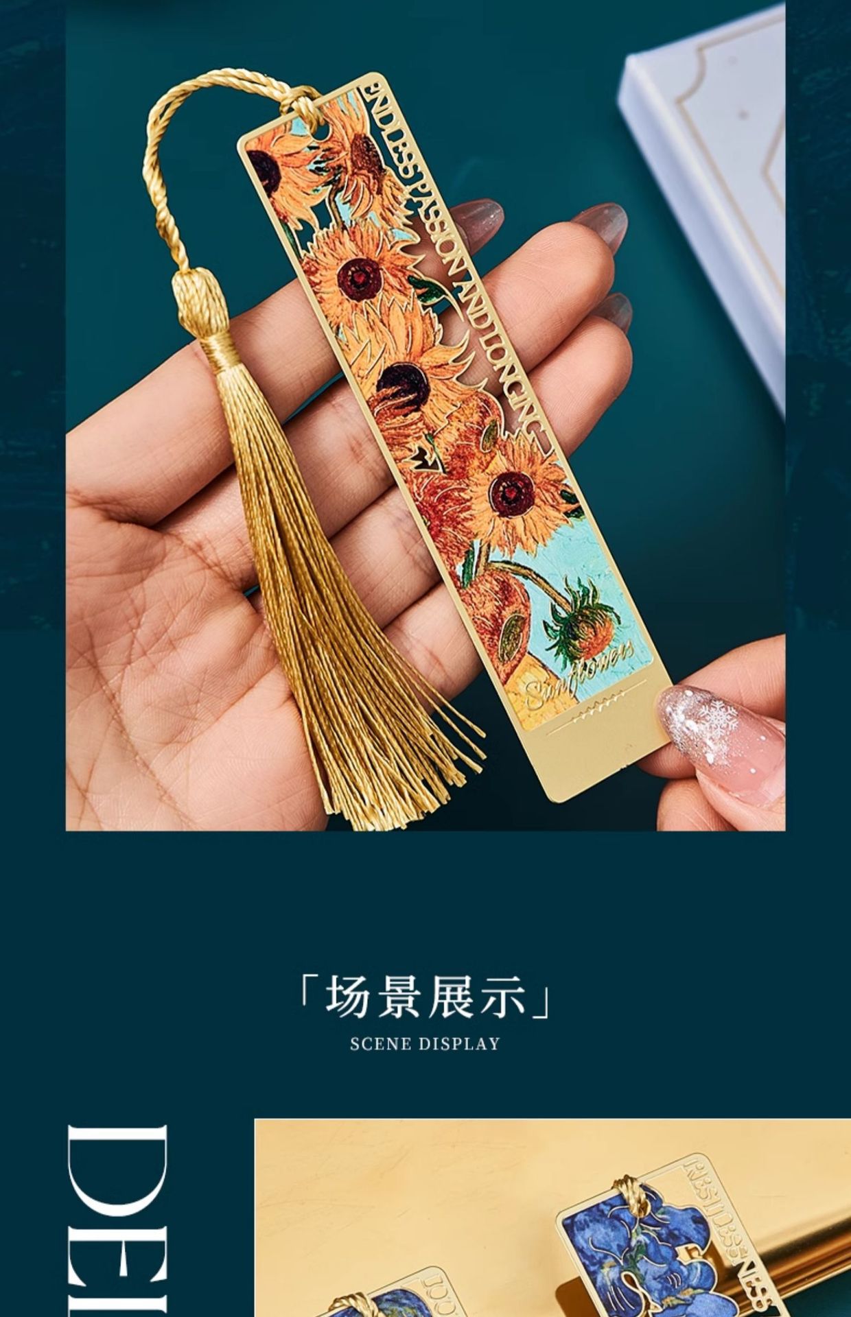 复古世界名画金属书签高档精致梵高莫奈油画书夹学生奖励小礼品