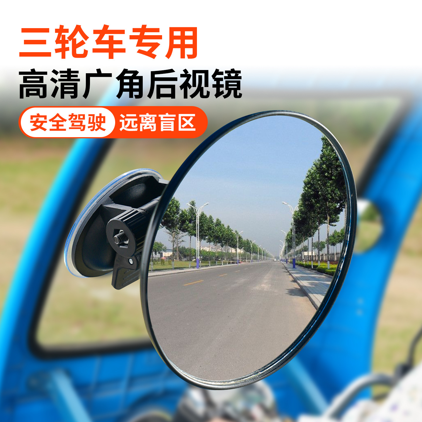 吸盘式电动三轮车后视镜大视野凸面倒车镜反光镜圆辅助镜四轮通用