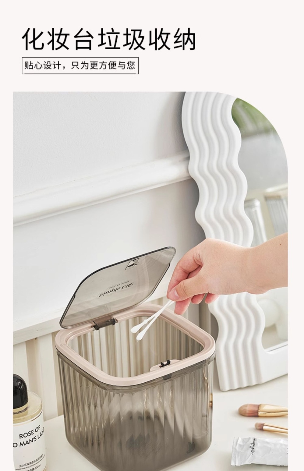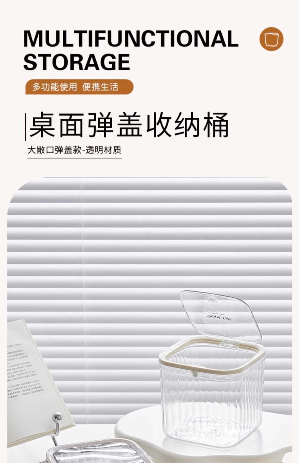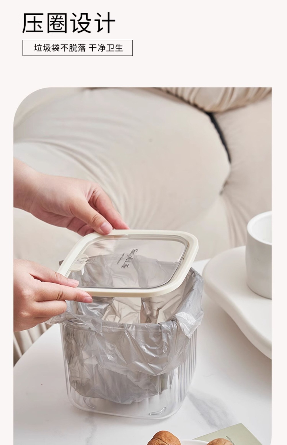 デスクトップゴミ箱プラスチック透明ゴミ箱家庭用収納ボックスインスタイル高価値クリエイティブプレス弾性蓋付き