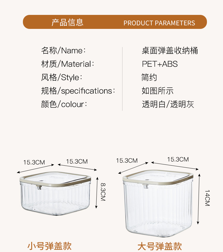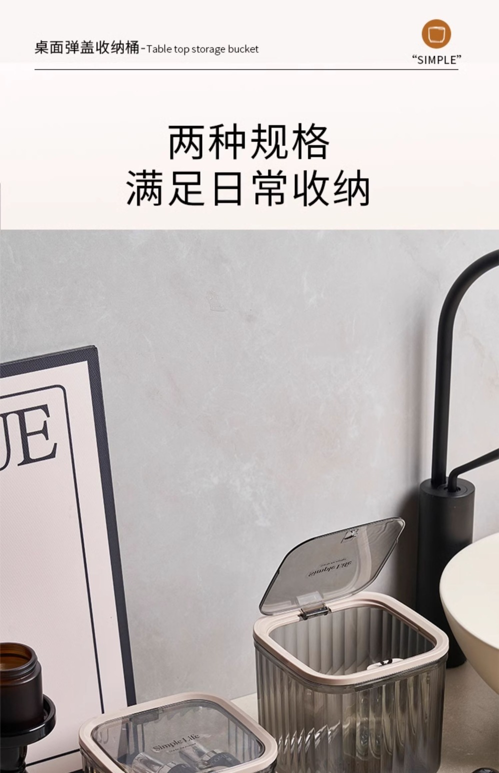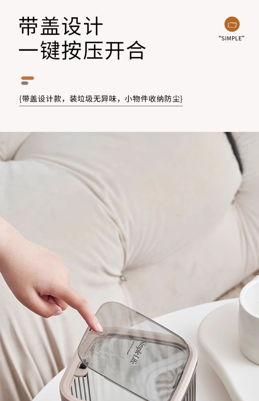デスクトップゴミ箱プラスチック透明ゴミ箱家庭用収納ボックスインスタイル高価値クリエイティブプレス弾性蓋付き