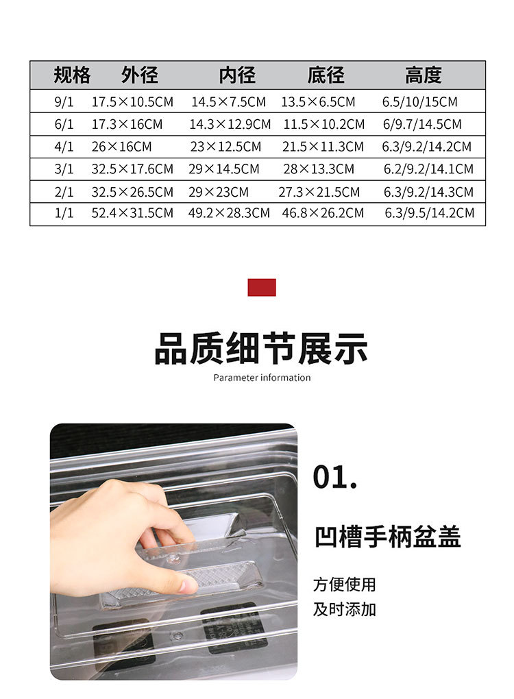 1/1-6.5高透明洗面器[縦53横32.5],1/1-10 高透明洗面器 [長さ53 幅32.5],1/1-15 高透明洗面器 [長さ53 幅32.5],1/1透明カバー[縦53横32.5],1/2-6.5高透明洗面器[縦32.5横26.5],1/2-10 高透明洗面器 [長さ32.5 幅26.5],1/2-15高透明洗面器[縦32.5横26.5],1/2透明カバー[縦32.5横26.5],1/3-6.5高透明洗面器[縦32.5横17.5],1/3-10 高透明洗面器 [長さ32.5 幅17.5],1/3-15 高透明洗面器 [長さ32.5 幅17.5],1/3透明カバー[縦32.5横17.5],1/4-6.5高透明洗面器[長さ26.5 幅16.5],1/4-10 高透明洗面器 [長さ26.5 幅16.5],1/4-15 高透明洗面器 [長さ26.5 幅16.5],1/4透明カバー[縦26.5×横16.5],1/6-6.5高透明洗面器[長さ17.5 幅16.5],1/6-10 高透明洗面器 [長さ17.5 幅16.5],1/6-15 高透明洗面器 [長さ17.5 幅16.5],1/6 透明密閉カバー [長さ17.5 幅16.5],1/6透明オープンカバー[縦17.5×横16.5],1/9-6.5 透明洗面器 [長さ17.5 幅11],1/9-10 透明洗面器 [長さ17.5 幅11],1/9-15 透明洗面器 [長さ17.5 幅11],1/9 透明密閉カバー [長さ17.5 幅11],1/9 透明オープンカバー [長さ17.5 幅11]