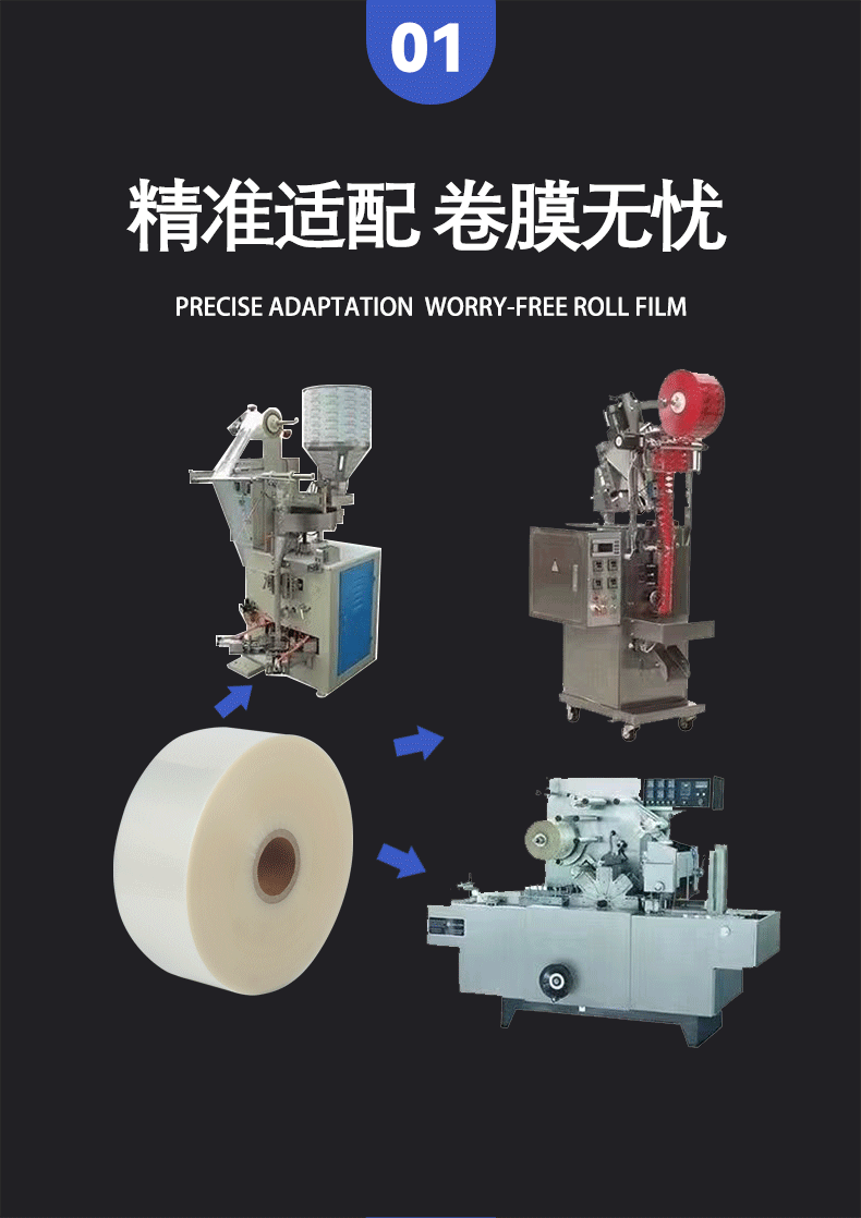 既製ポリエステル複合PE包装フィルム、顆粒粉末包装フィルム、高透明包装フィルム、自動機包装フィルム