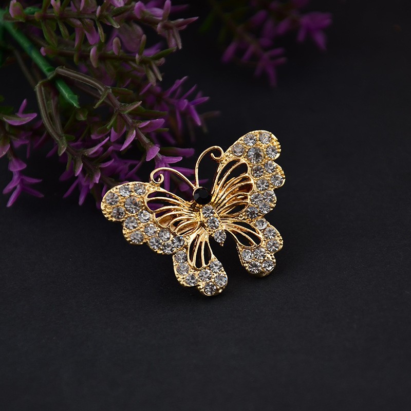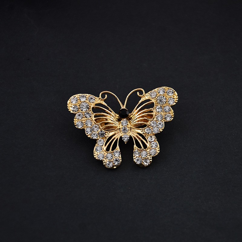 韓国系のダイヤモンドの透かし彫りの蝶のブローチの高級なシンプルなドリルの合金の女性の胸の花のピンの服装は卸売りを飾ります。