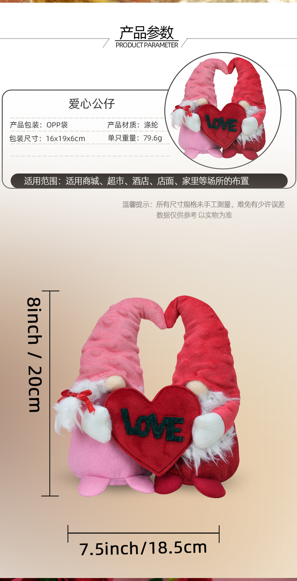 手に愛を抱いて顔のない小人のルドルフのバレンタインデーの人形のバレンタインデーの贈り物の小さい贈り物の装飾品