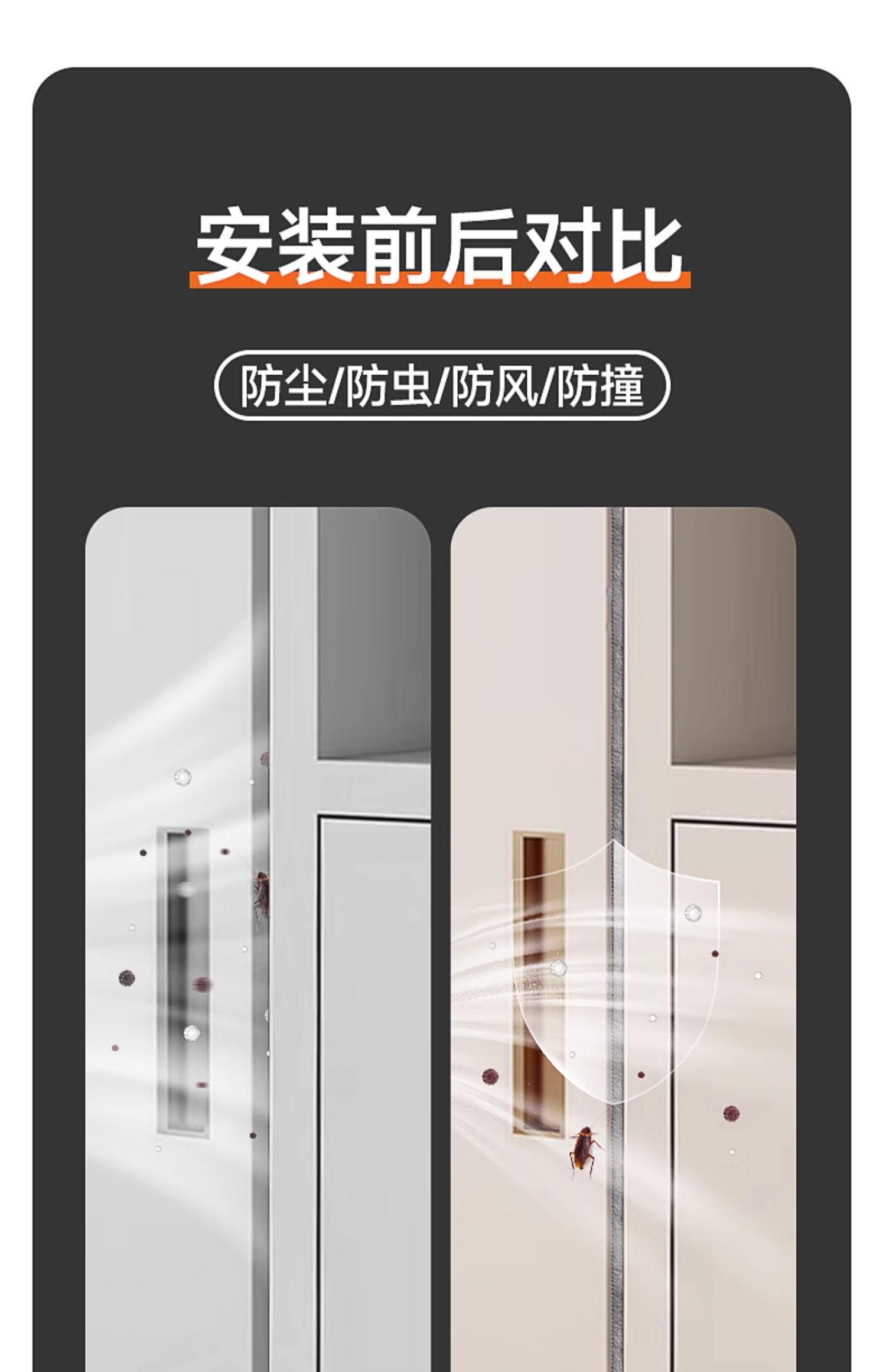 障子シールを押してドアの窓のたんすを移動して、防塵バーのドアのすき間をシールします。