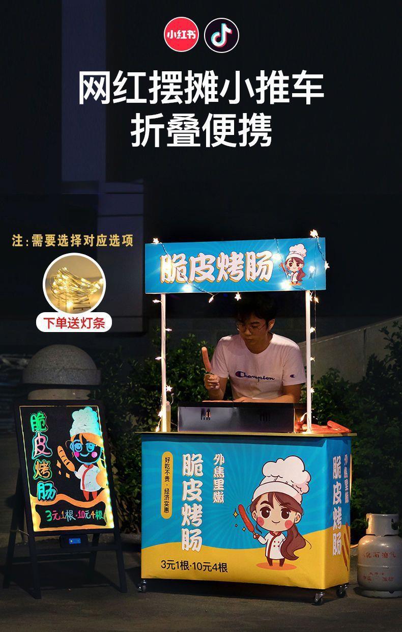 インターネット有名人の屋台、折りたたみ式モバイルテーブル、ソーセージと氷の粉末、大学生向けの商業販売ディスプレイスタンド