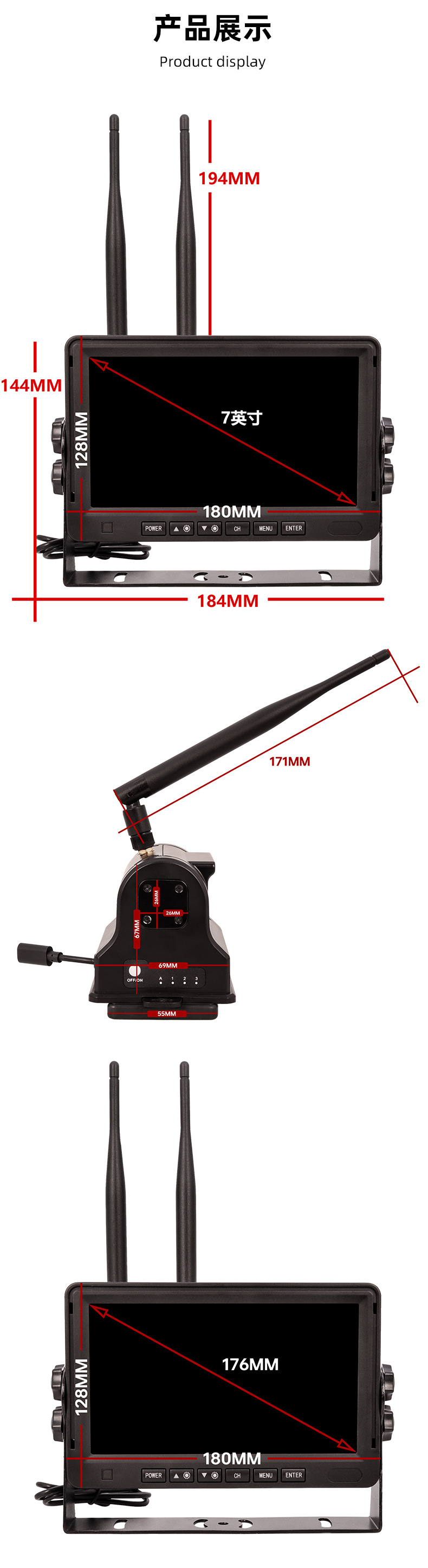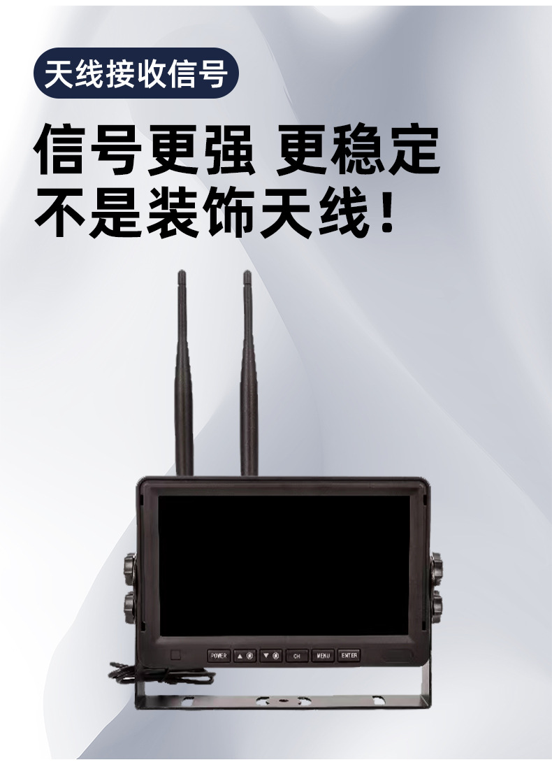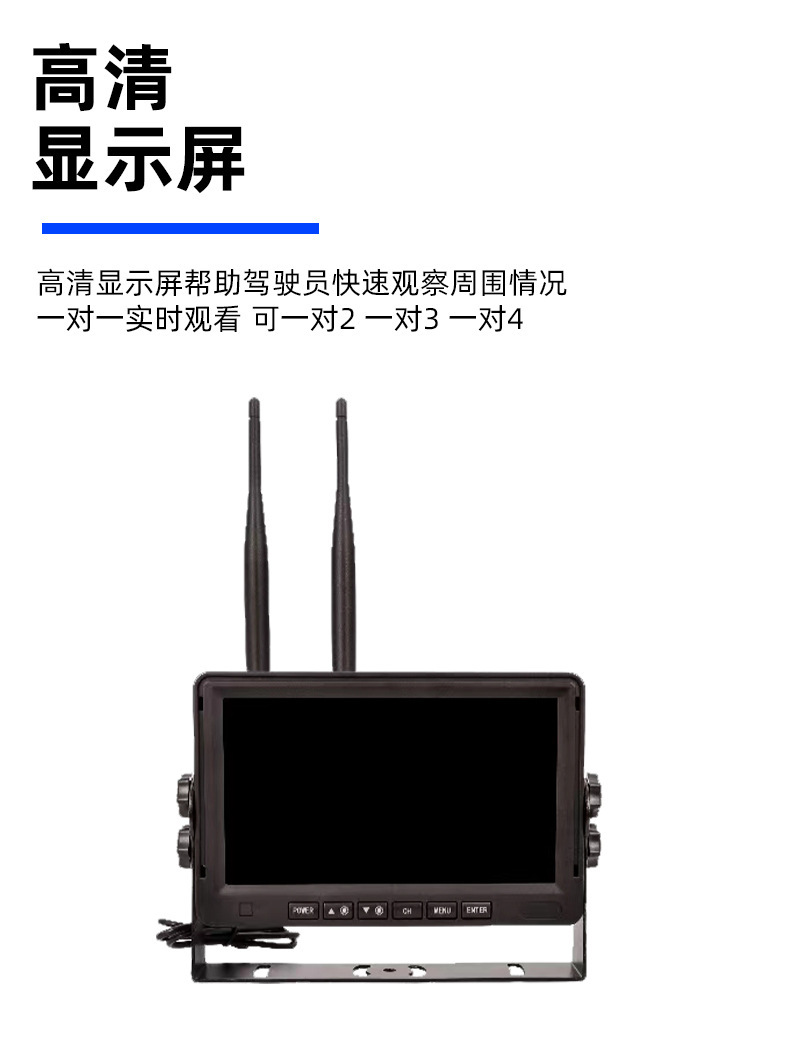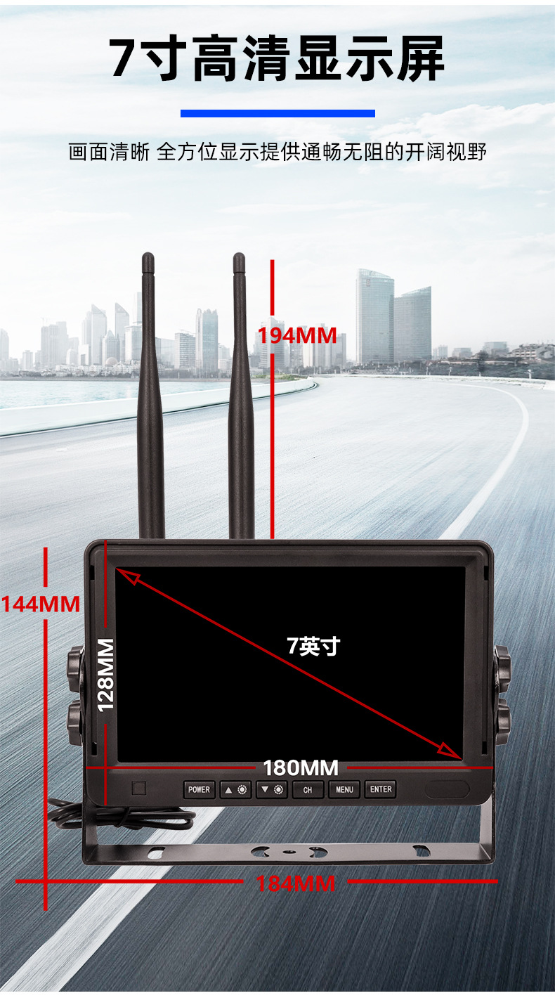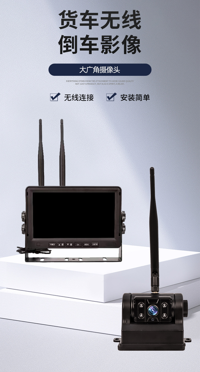 7inch ワイヤレス高解像度車載フルアングルモニター トラック、RV、クレーン用 赤外線ナイトビジョン監視装置 配線不要