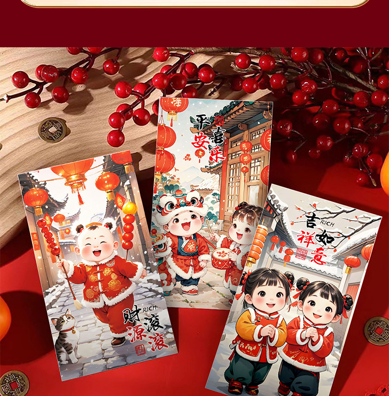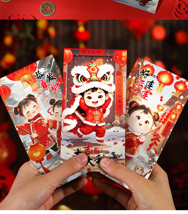 2025年の財神紅包の新商品は旧正月の新年の子供の創意萌えの子供の利は赤い包みの卸売りの漫画です。