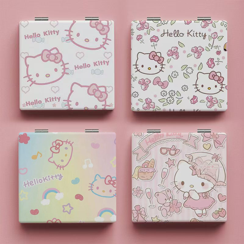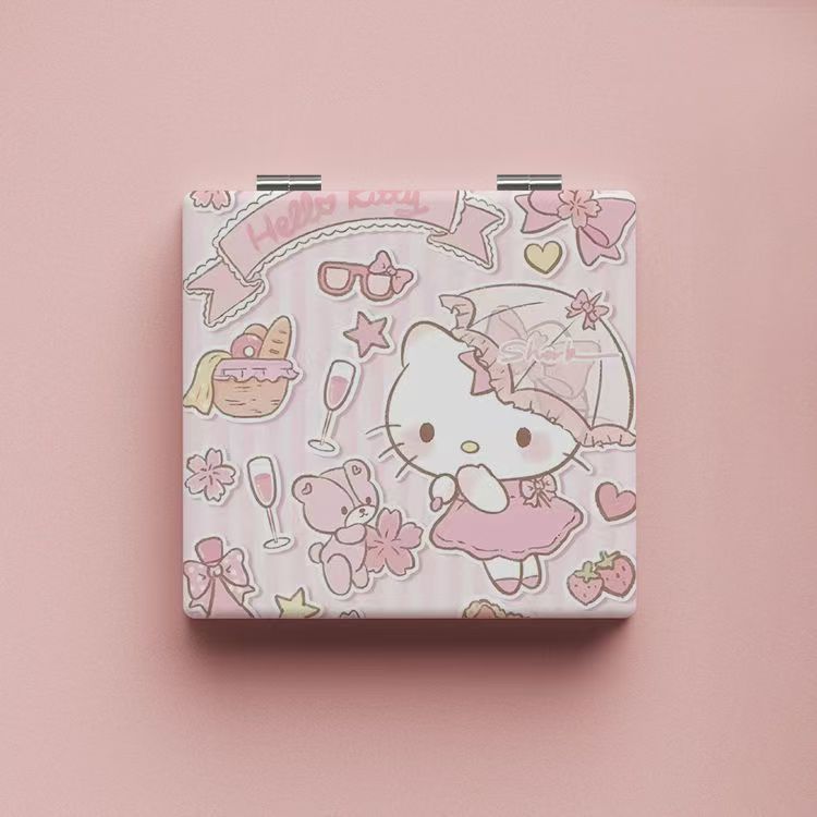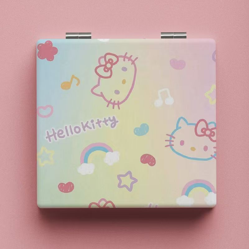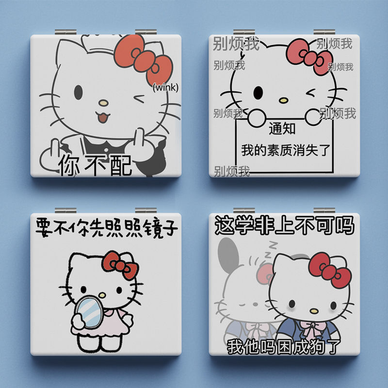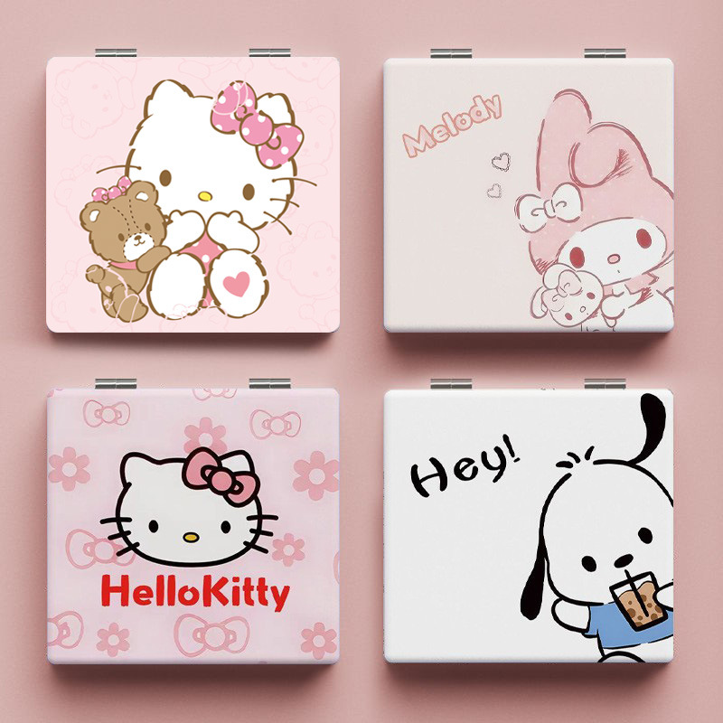 サンリオ折りたたみ式化粧鏡携帯用ハンドヘルド補正鏡漫画風正方形小型鏡かわいいギフト鏡