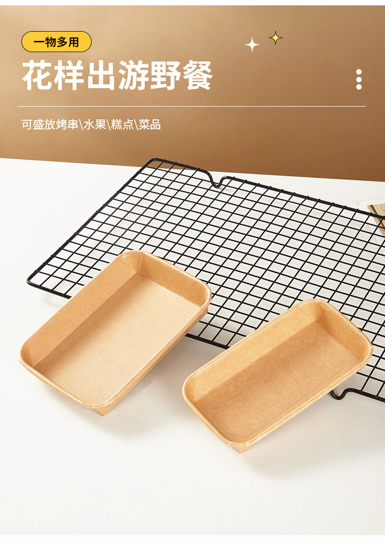 厚手の使い捨てクラフト紙防水防油トレー屋外キャンプバーベキュー皿マイクロ波冷蔵梱包箱