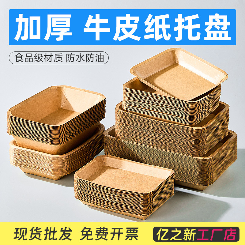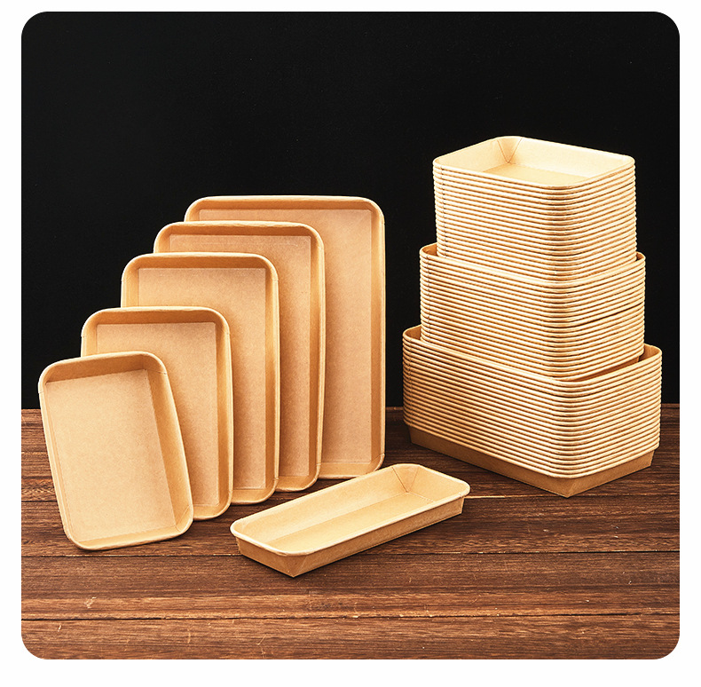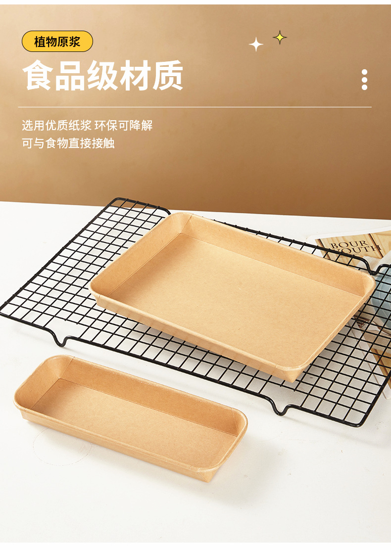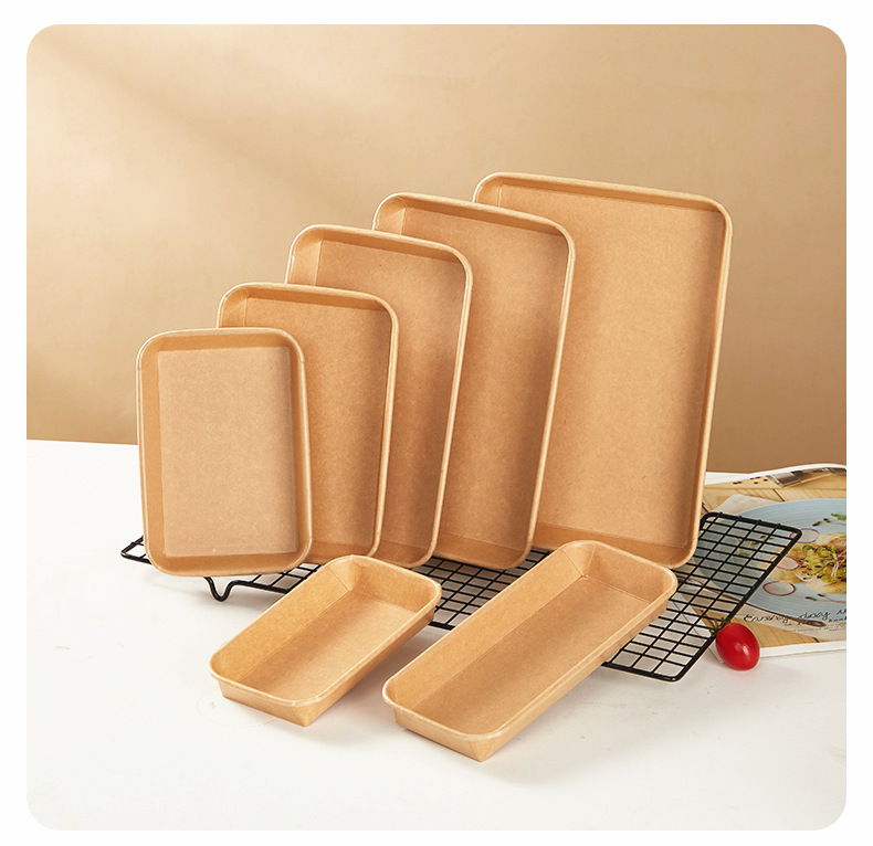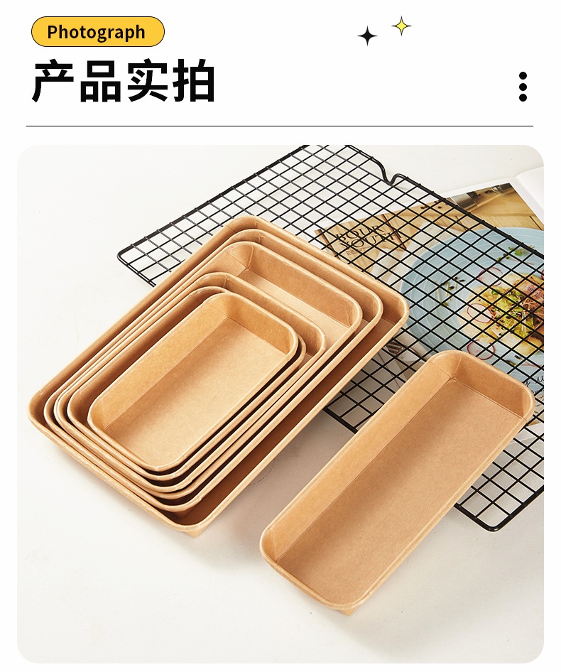 クラフト紙トレイ使い捨て皿長方形蓋なしクラフト紙皿環境保護食品級厚いバーベキュー商用