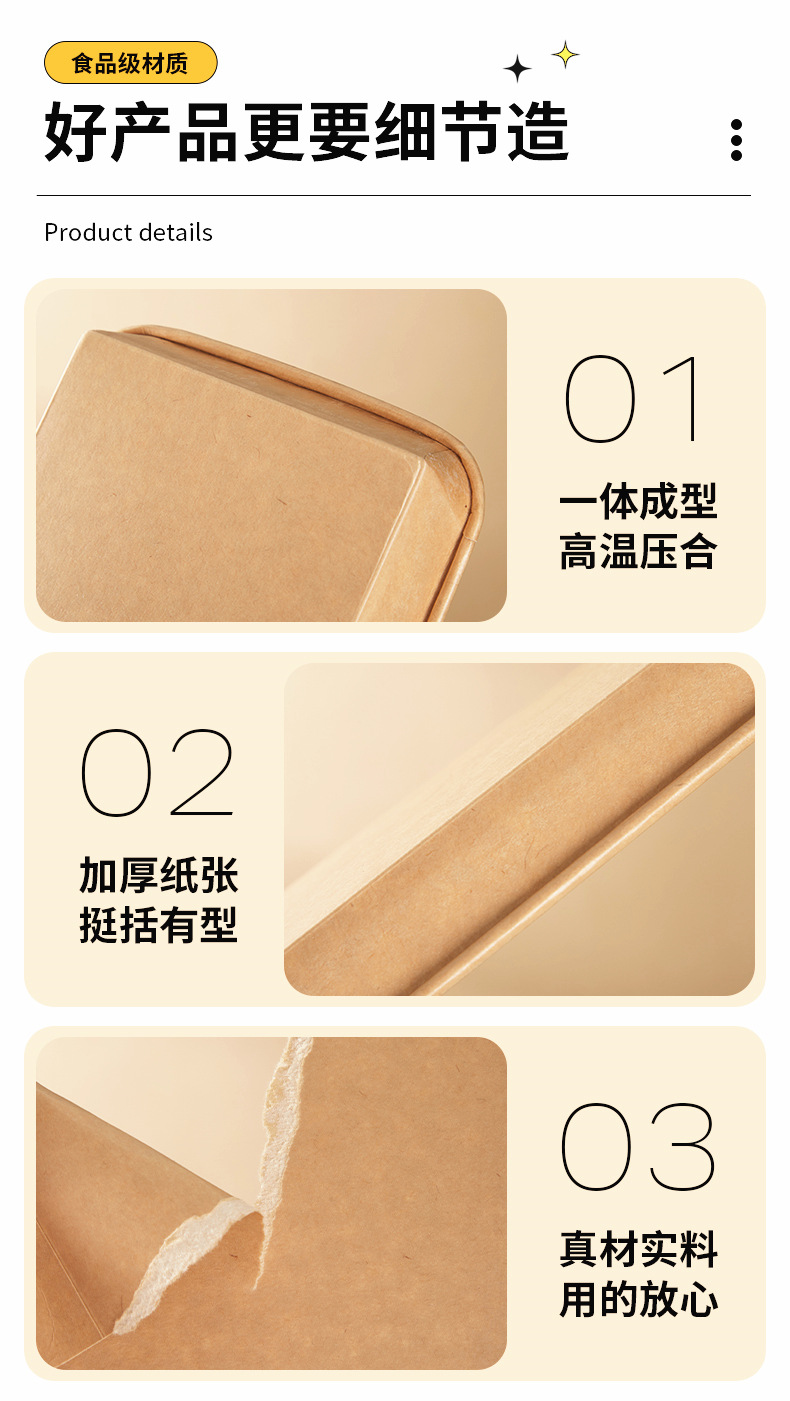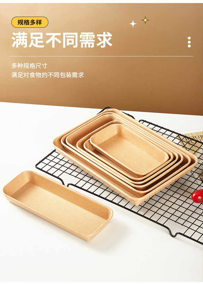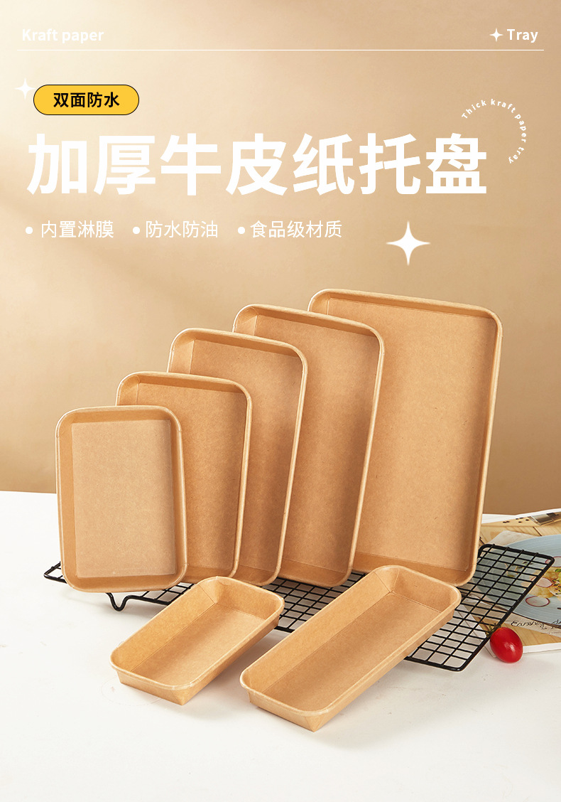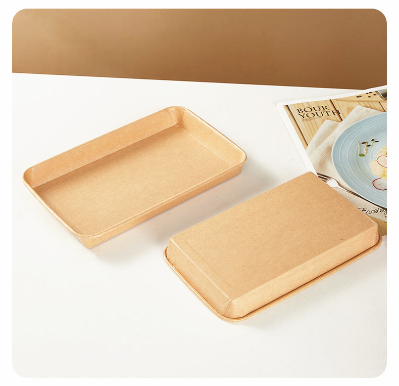 クラフト紙トレイ使い捨て皿長方形蓋なしクラフト紙皿環境保護食品級厚いバーベキュー商用