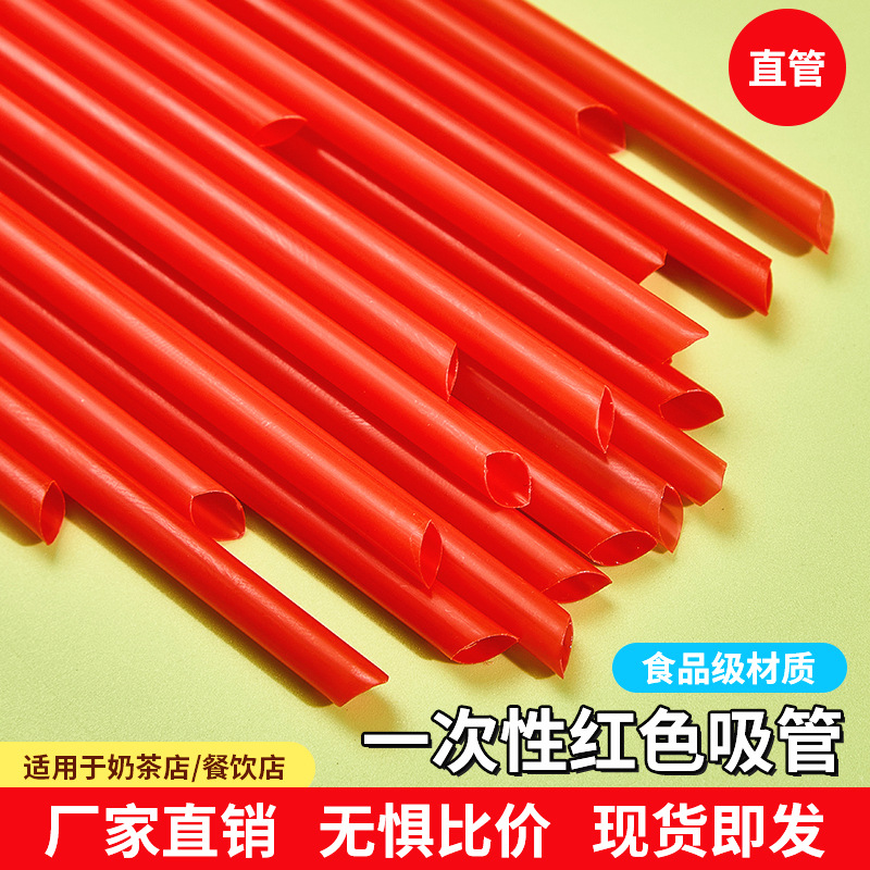 100本/赤い使い捨てストロー独立包装ミルクティーコーヒー細いプラスチックストロー家庭用メーカー卸売り