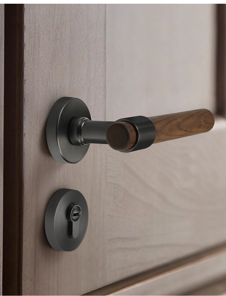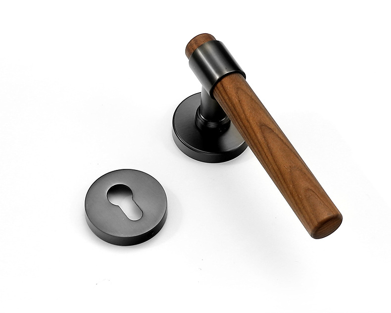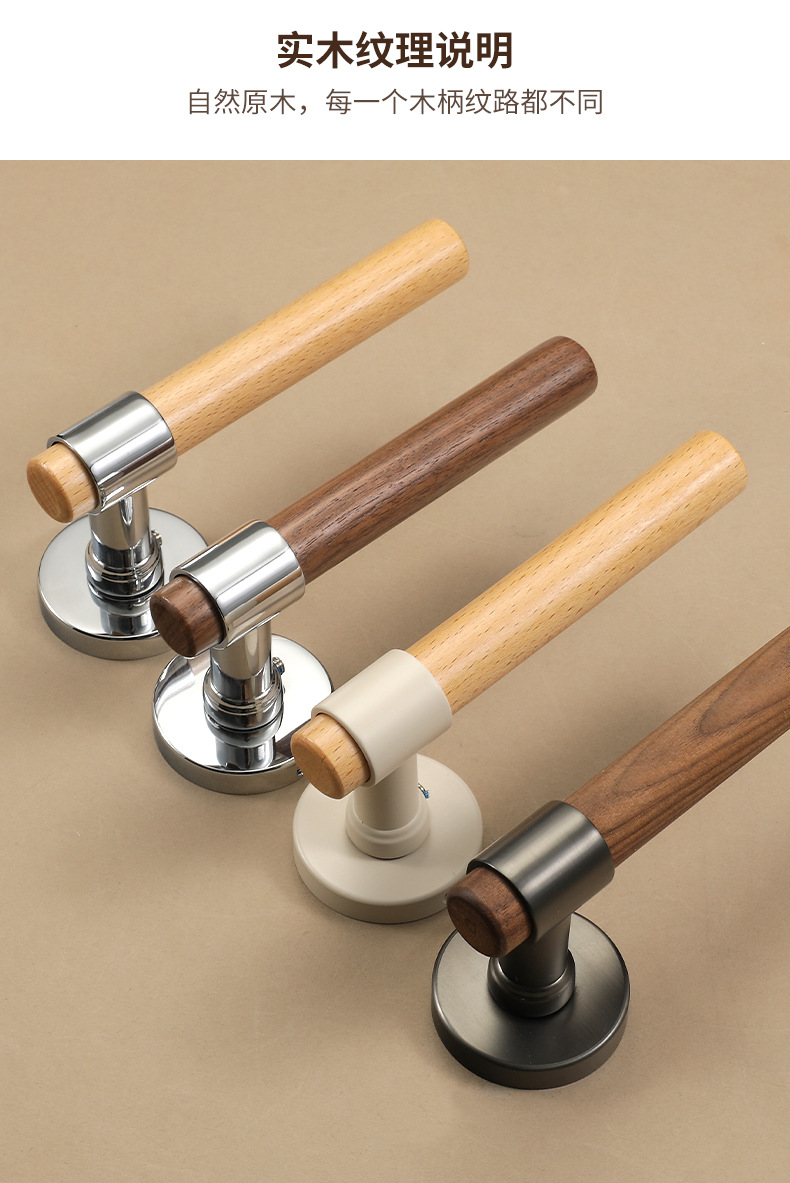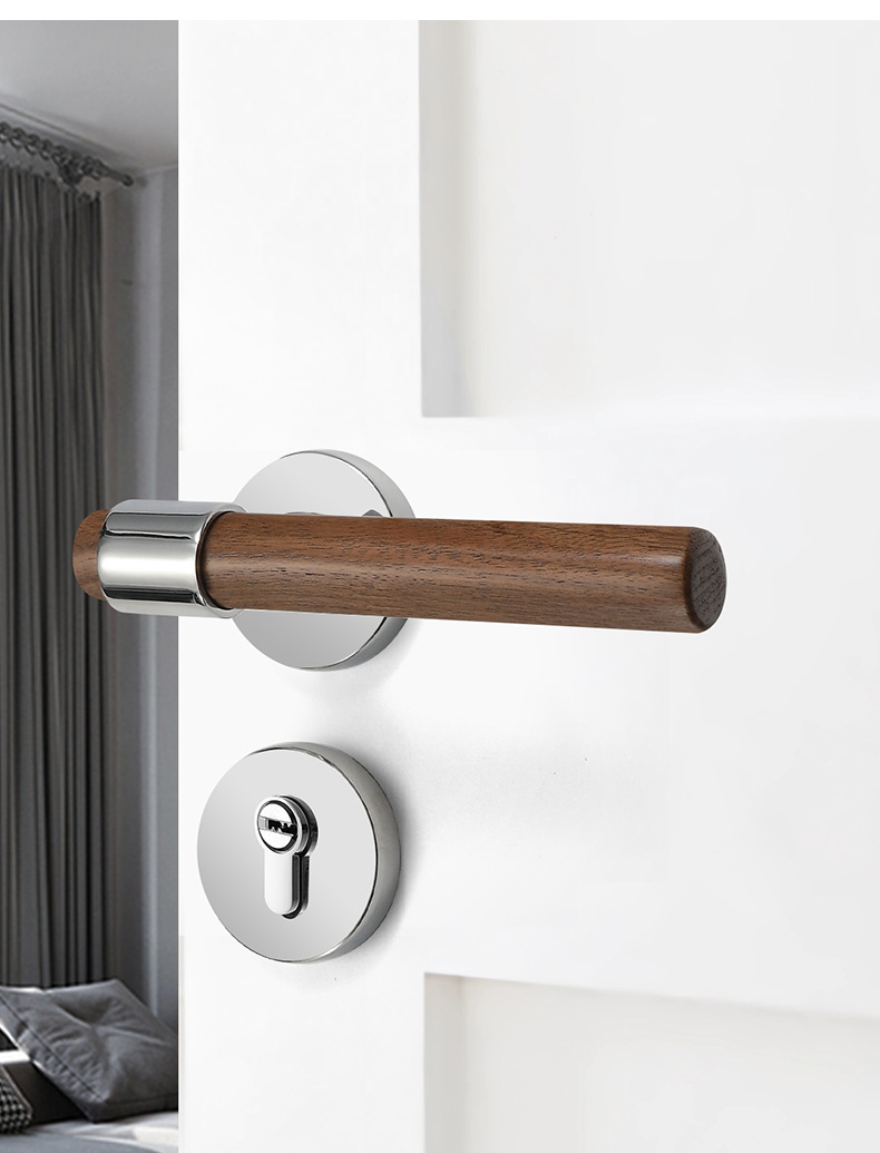 現代のシンプルな胡桃木寝室のドアロック家庭用分体磁気吸引静音ドアロック室内室内原木ドアノブ