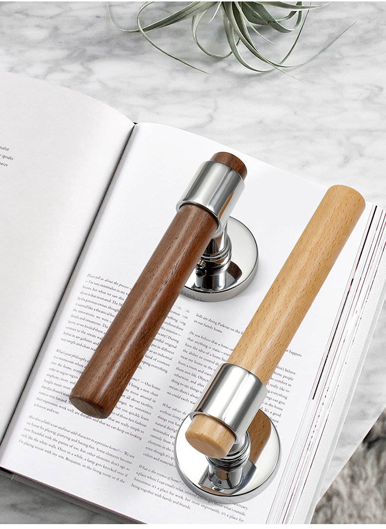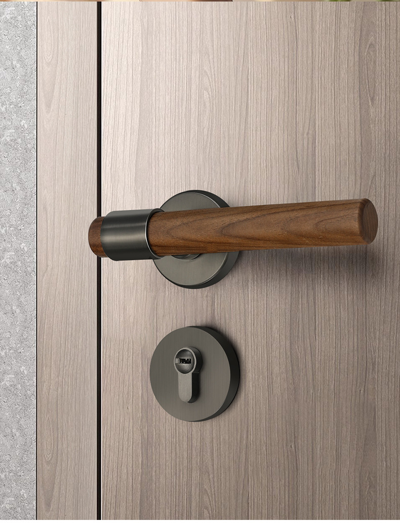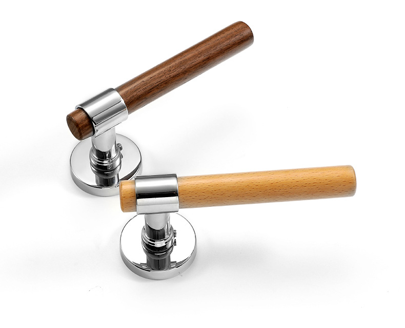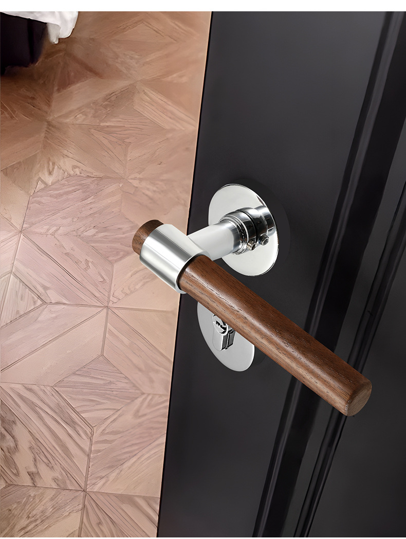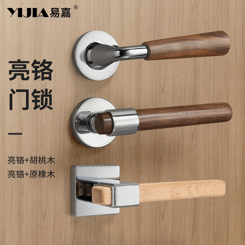 現代のシンプルな胡桃木寝室のドアロック家庭用分体磁気吸引静音ドアロック室内室内原木ドアノブ