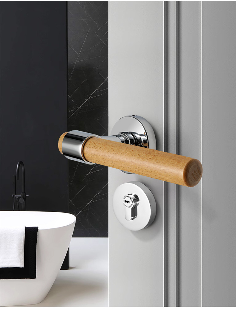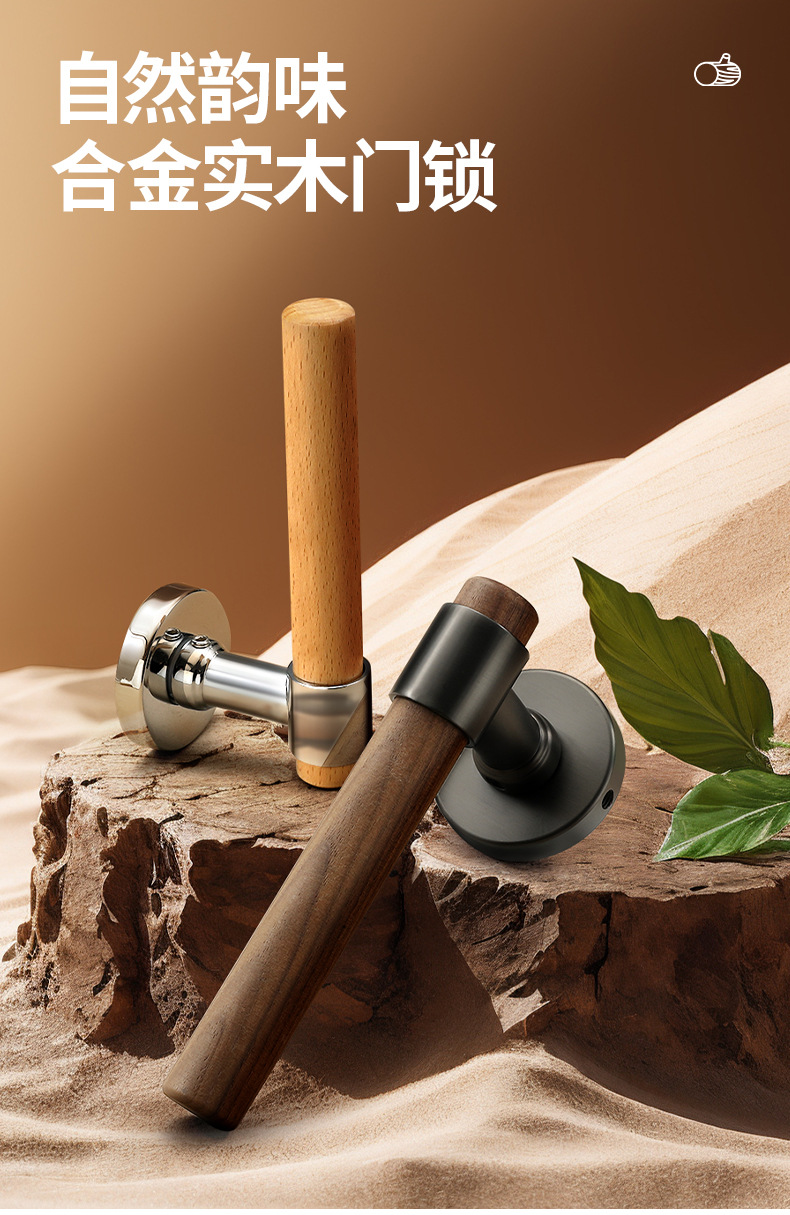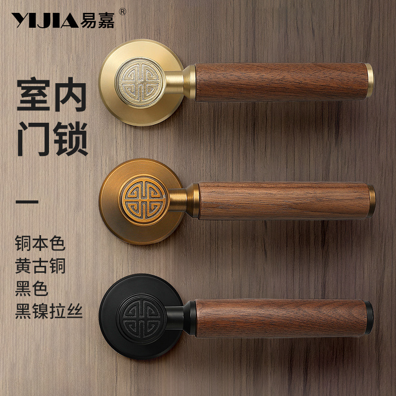 新中式复古家用室内门锁卧室卫生间房门锁具磁吸静音胡桃木门把手
