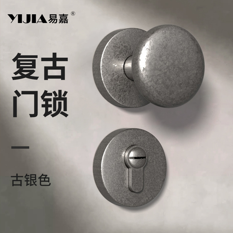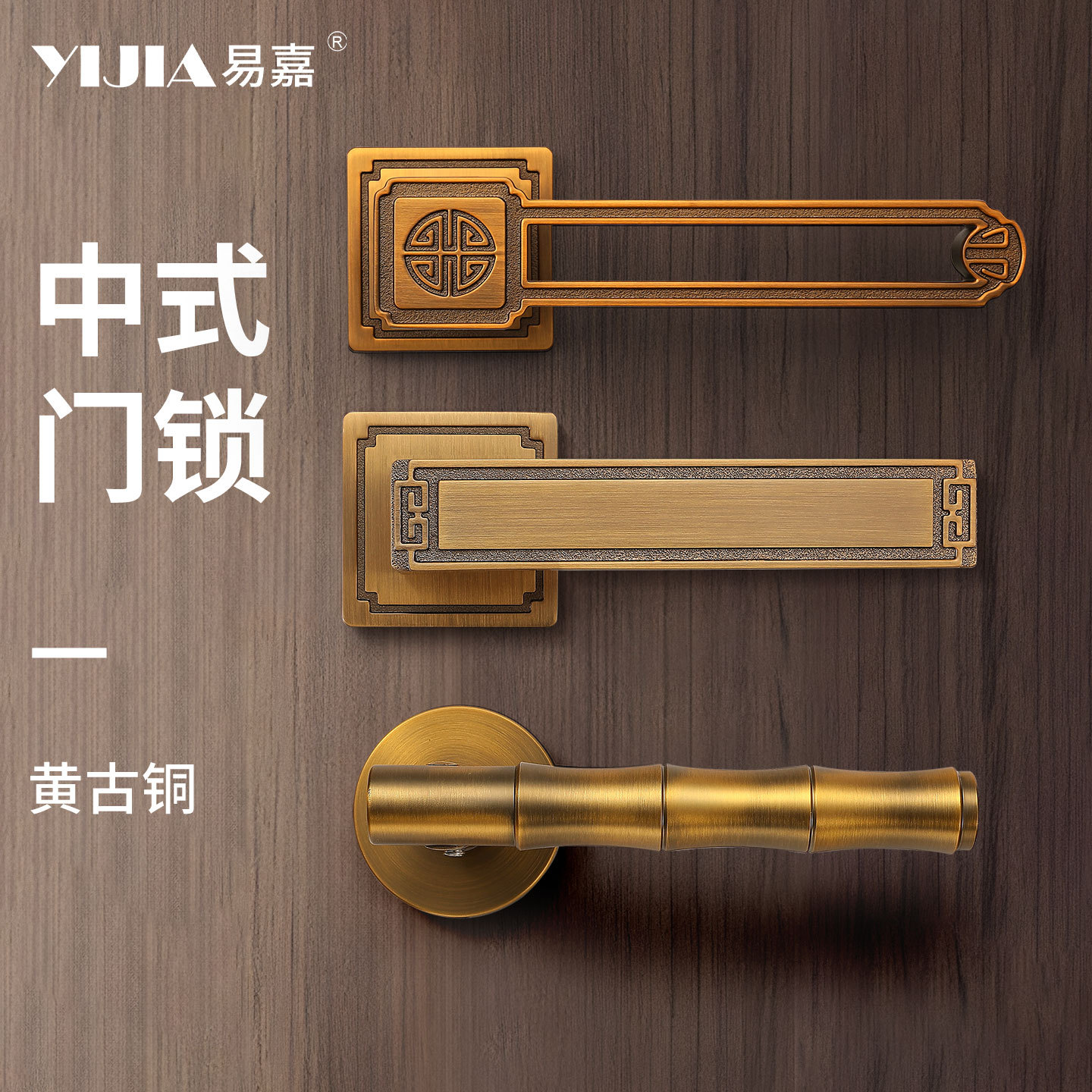 复古中式黄古铜室内门锁家用房间门卧室门锁分体磁吸静音木门把手