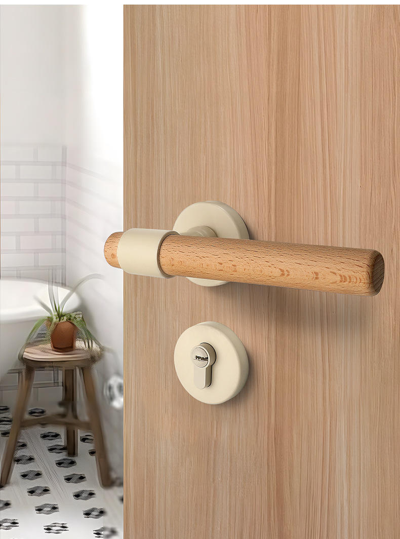 フランスクリーム風室内ドアロックミルク白色家庭用汎用型寝室トイレ部屋実木門ロックハンドル