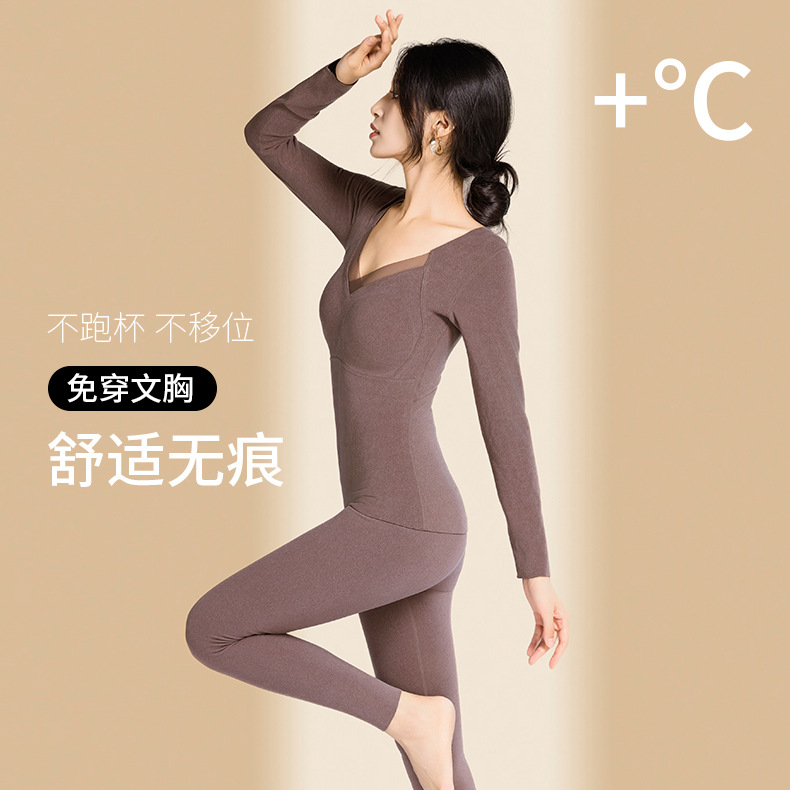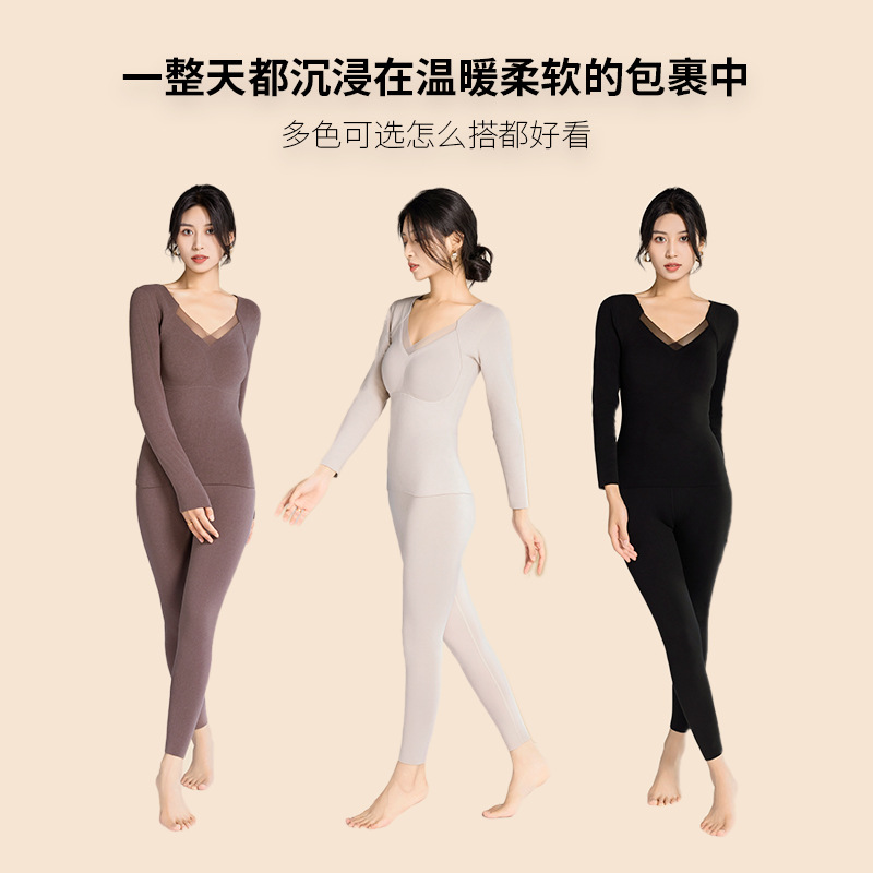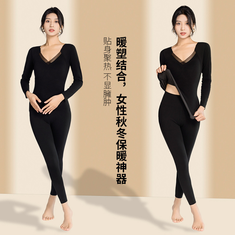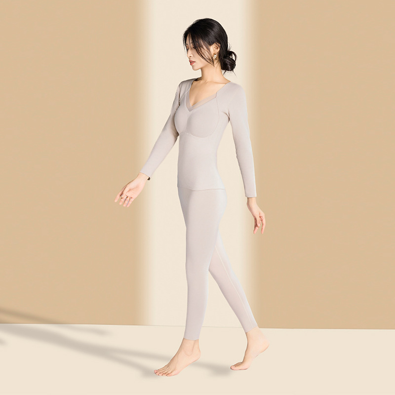 インビジブル美肌衣セット 発熱保温下着 女性用超薄秋服秋ズボンセット 秋冬保温インナー